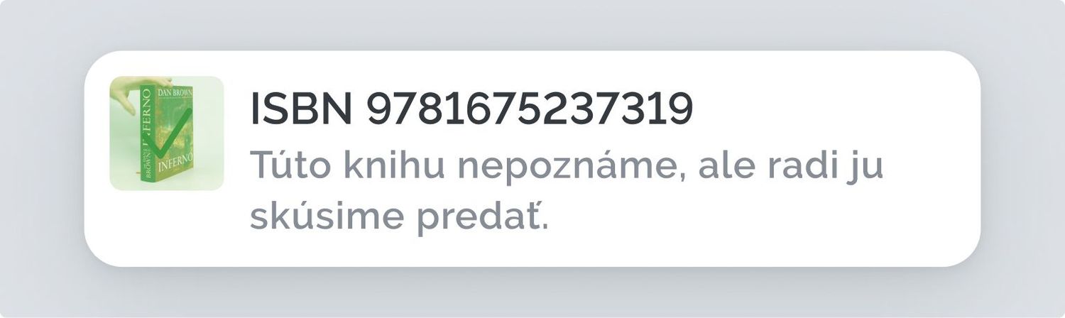 Naskenuj telefónom ISBN pri čiarovom kóde knižky a hneď uvidíš, či knihu dokážeme predať a aká bude tvoja provízia. Scanner nemusíš inštalovať, aplikácia funguje priamo v prehliadači.