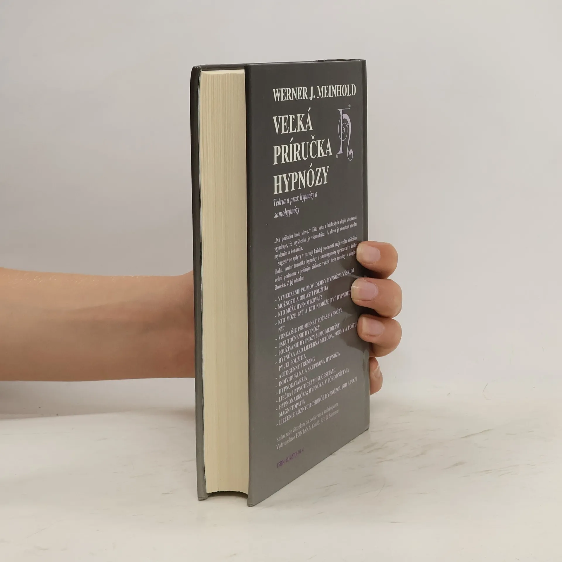 Teória a prax hypnózy a samohypnózy „Na počiatku bolo slovo.“ Táto veta z biblických dejín stvorenia vyjadruje, že myšlienka je všemohúca. A slovo je mostom medzi myslením a konaním. Veľmi podrobná publikácia o použití hypnózy v medicíne, psychológii, pedagogike i v súkromnom živote od popredného nemeckého odborníka. Ako sa naučiť hypnotizovať? Ako využiť hypnózu v praxi atď.