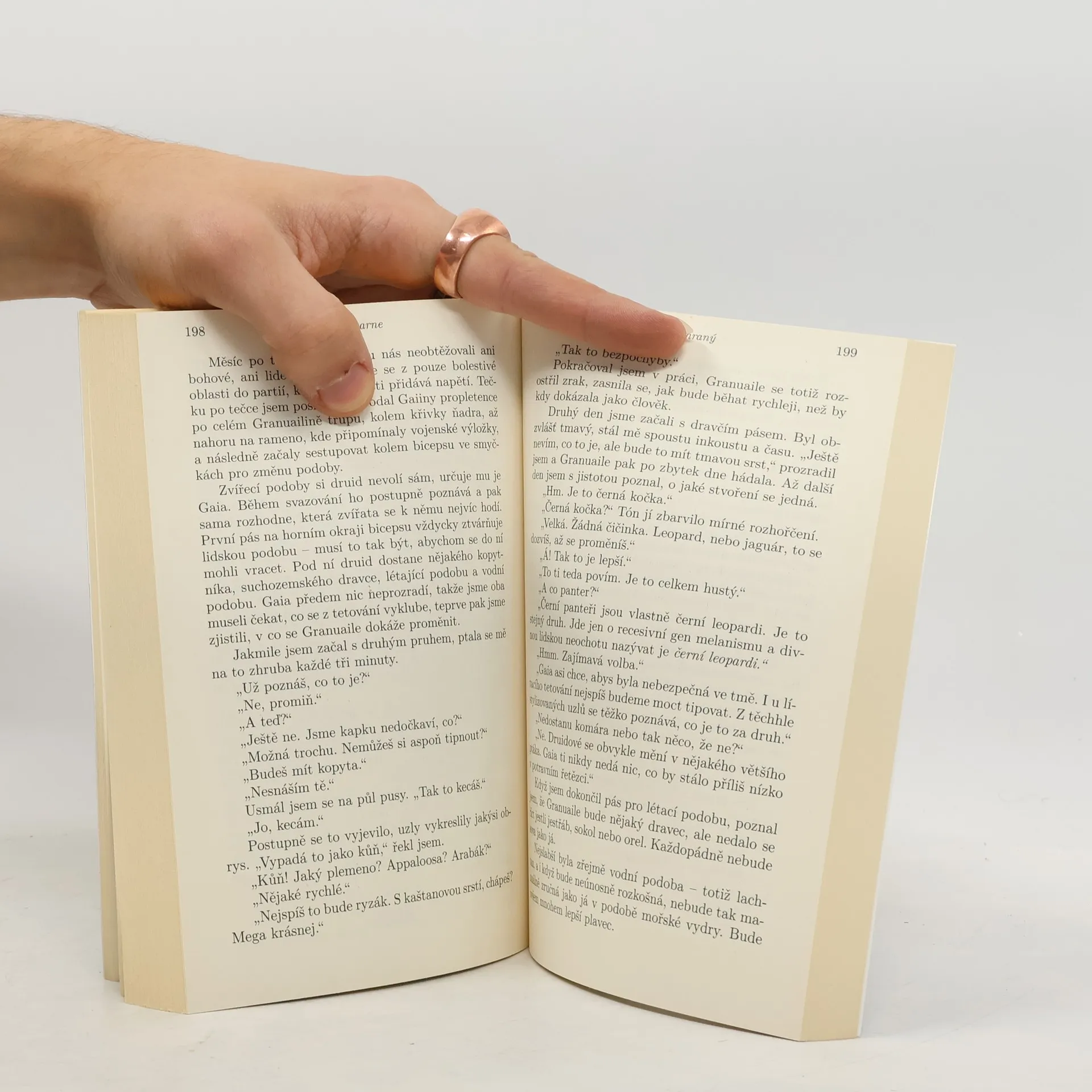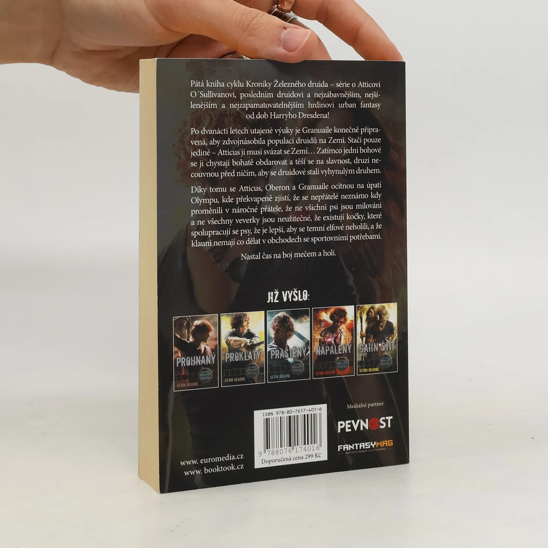 Pátá kniha cyklu Kroniky Železného druida – série o Atticovi O´Sullivanovi, posledním druidovi a nejzábavnějším, nejšílenějším a nejzapamatovatelnějším hrdinovi urban fantasy od dob Harryho Dresdena! Po dvanácti letech utajené výuky je Granuaile konečně připravená, aby zdvojnásobila populaci druidů na Zemi. Stačí pouze jediné – Atticus ji musí svázat se Zemí… Zatímco jedni bohové se ji chystají bohatě obdarovat a těší se na slavnost, druzí necouvnou před ničím, aby se druidové stali vyhynulým druhem. Díky tomu se Atticus, Oberon a Granuaile ocitnou na úpatí Olympu, kde překvapeně zjistí, že se nepřátelé neznámo kdy proměnili v náročné přátele, že ne všichni psi jsou milováni a ne všechny veverky jsou neužitečné, že existují kočky, které spolupracují se psy, že je lepší, aby se temní elfové neholili a že klauni nemají co dělat v obchodech se sportovními potřebami. Nastal čas na boj mečem a holí.