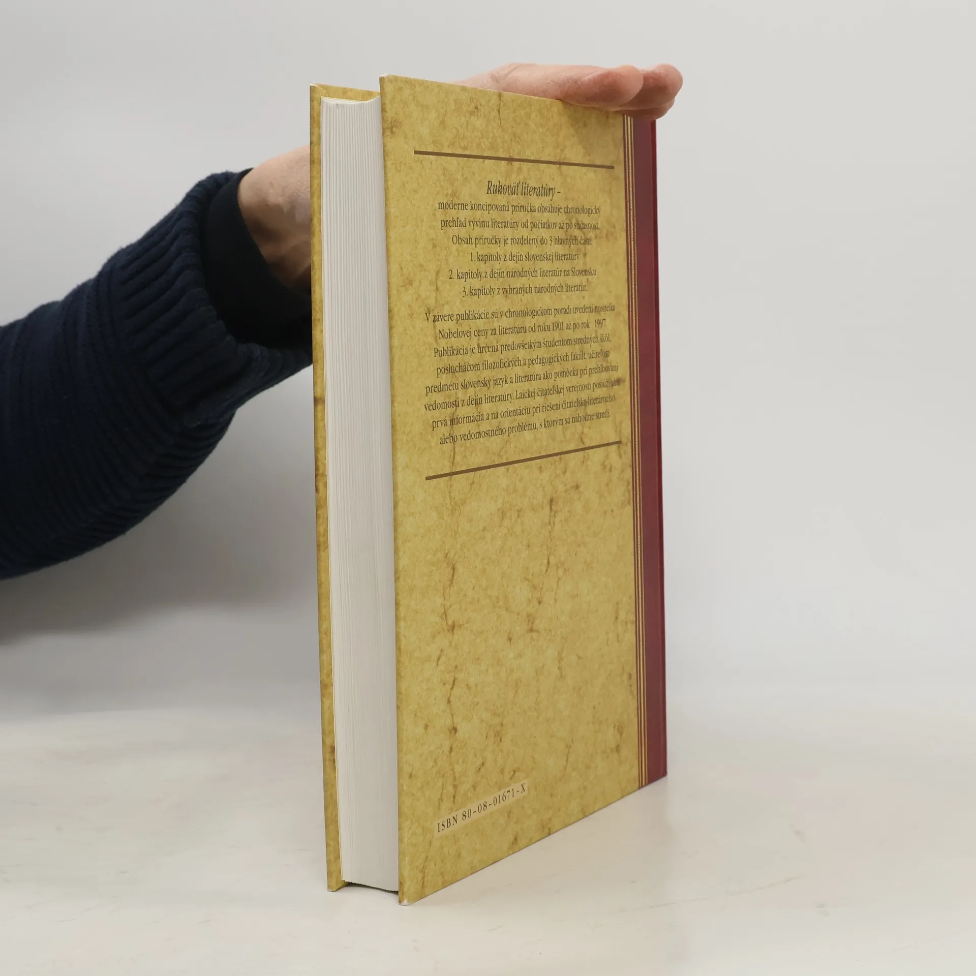 Príručka obsahuje chronologický prehľad vývinu literatúry od počiatkov až po súčasnosť. Obsah príručky je rozdelený do troch hlavných častí: 1. kapitoly z dejín slovenskej literatúry 2. kapitoly z dejín národných literatúr na Slovensku 3. kapitoly z vybraných národných literatúr V závere sú v chronologickom poradí uvedení nositelia Nobelovej ceny za literatúru od roku 1901 až po rok 1997.