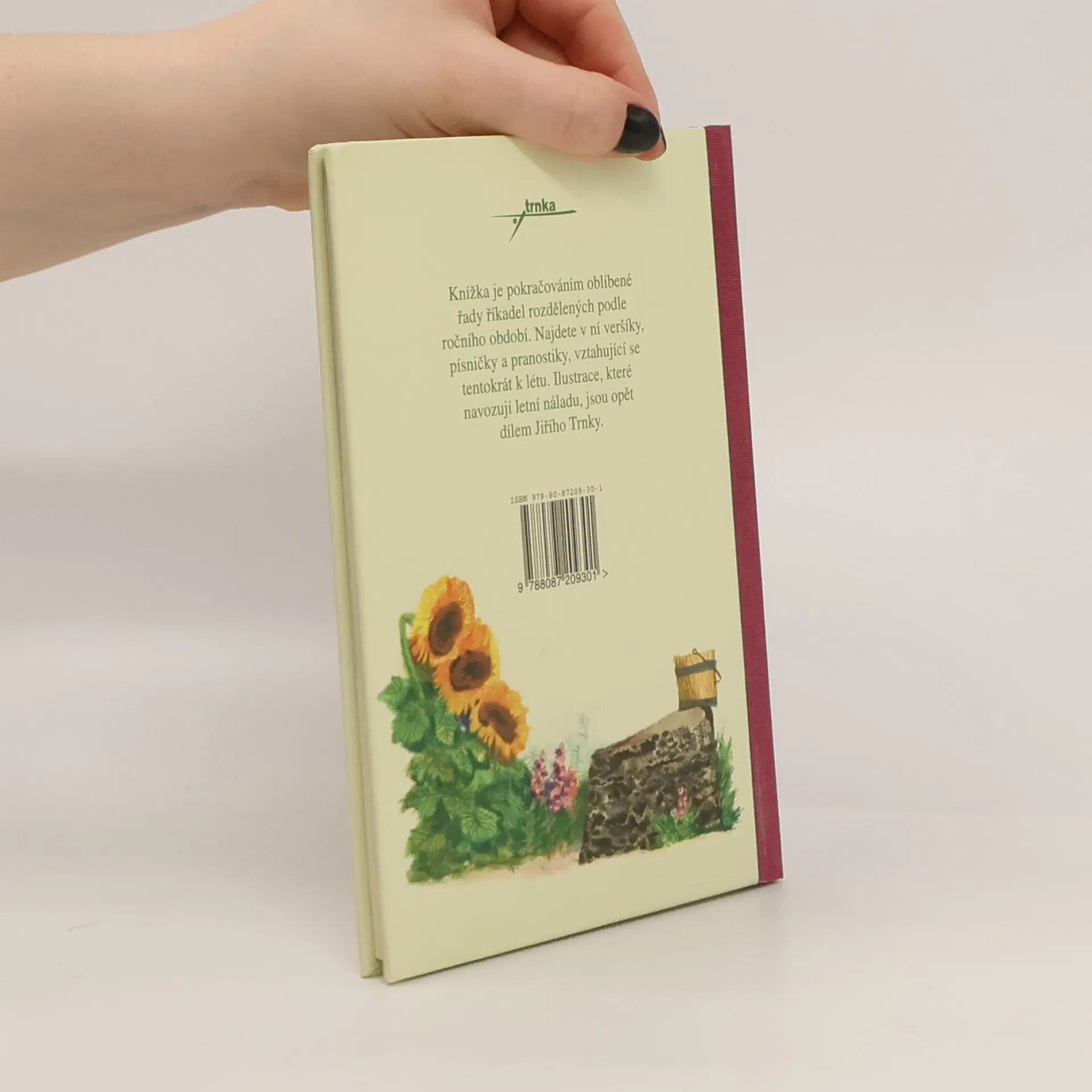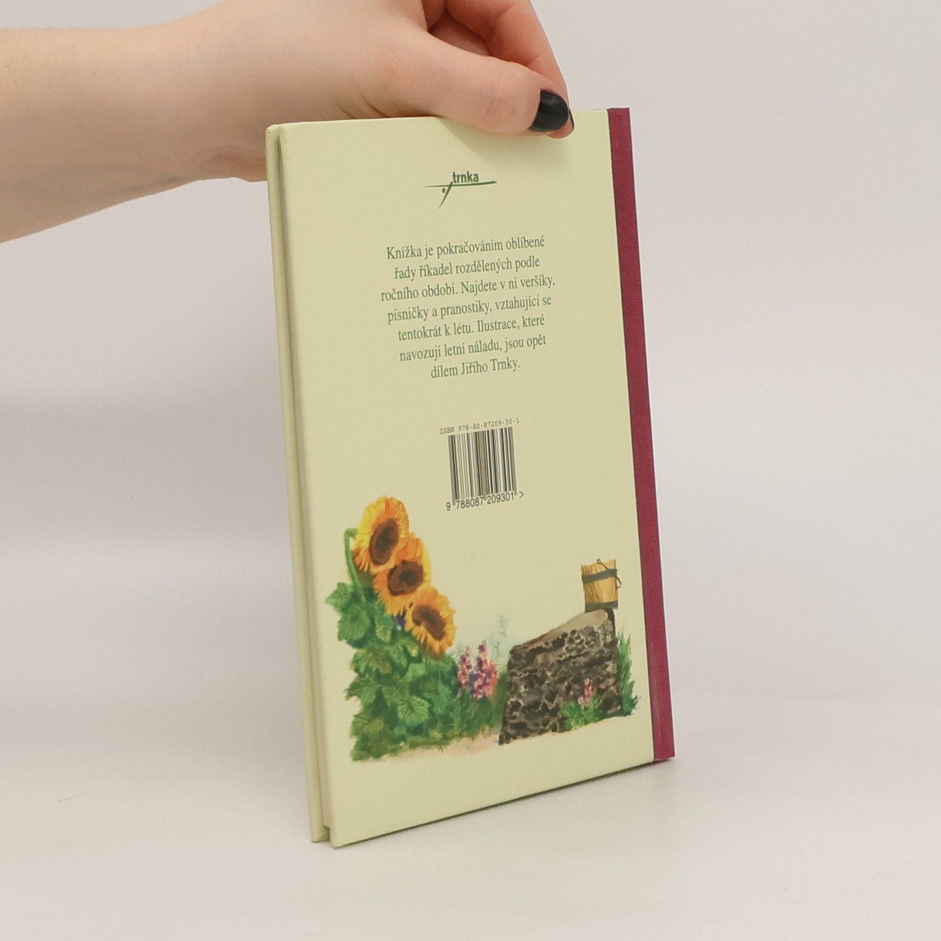 Knížka je pokračováním oblí­bené řady říkadel roz­dělených podle ročního období. Najdete v ní ver­šíky, písničky a pranostiky, vzta­hující se tentokrát k létu. Ilustrace, které navozují letní náladu, jsou opět dílem Jiřího Trnky.