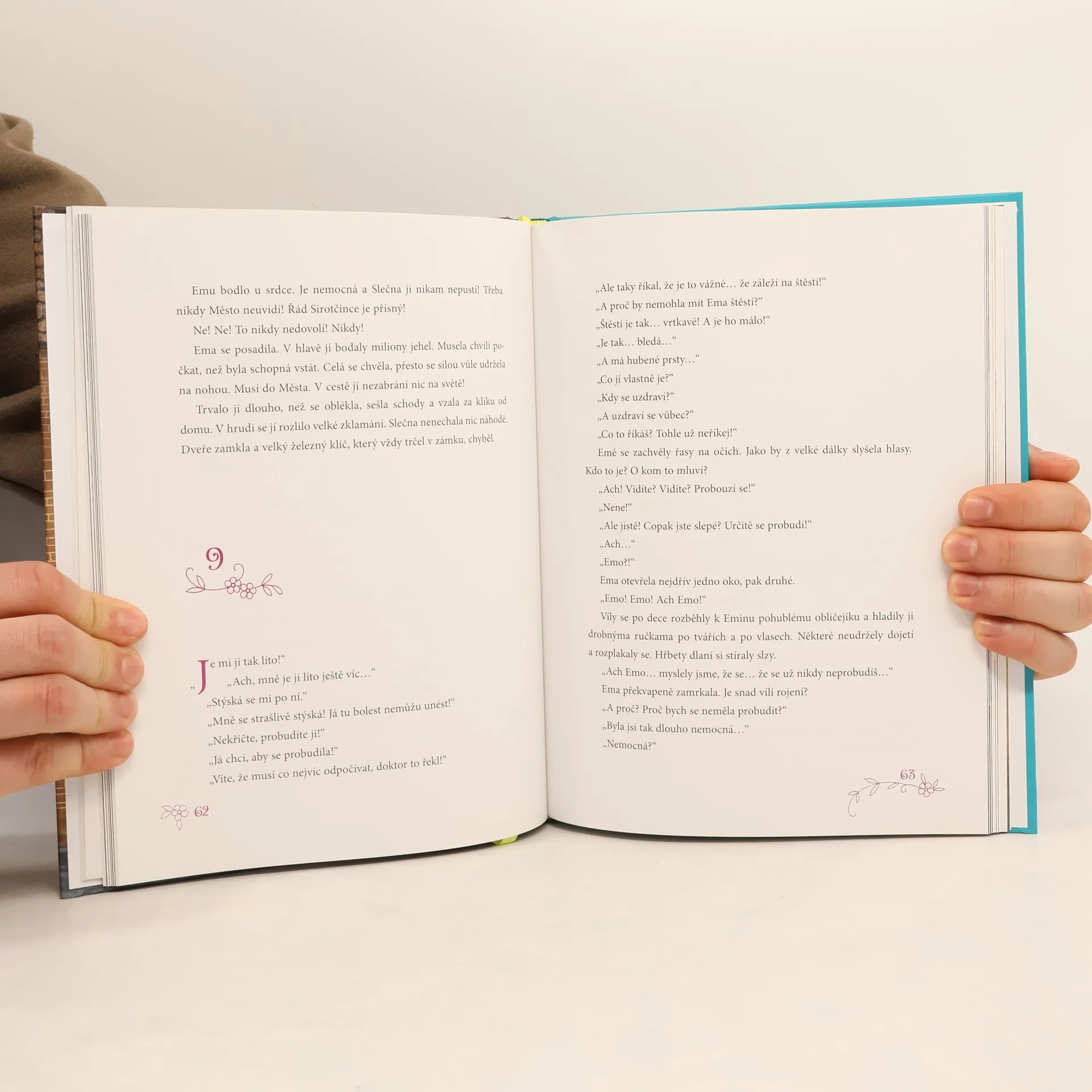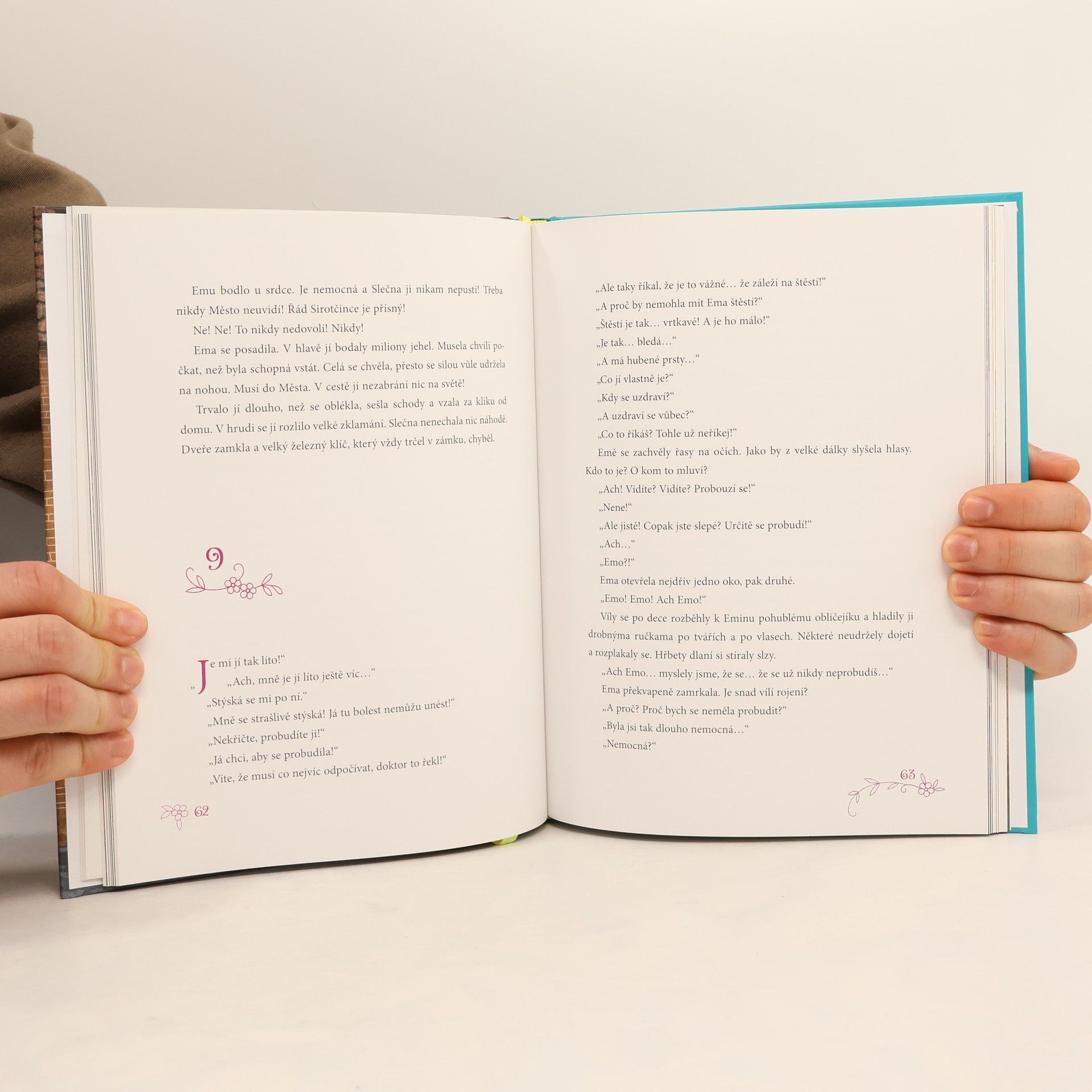 Ema si nepamatuje, že by někdy žila jinde než s ostatními dětmi bez rodičů v Sirotčinci. Moc mezi ně nezapadá. Dokáže totiž slyšet a vidět věci, které jiné děti nevidí a neslyší – třeba malé víly… Moc se těší, až bude mít desáté narozeniny. Čeká ji totiž výlet do úchvatného Města, které je schované za vysokou zdí. Nakonec se její čekání ještě o rok prodlouží, ale stojí to za to. Ema si z Města odnáší spoustu dobrodružných zážitků a zkušeností. Hlavně však kouzelnou knihu, která změní život nejen jí, ale i všem ostatním v Sirotčinci.