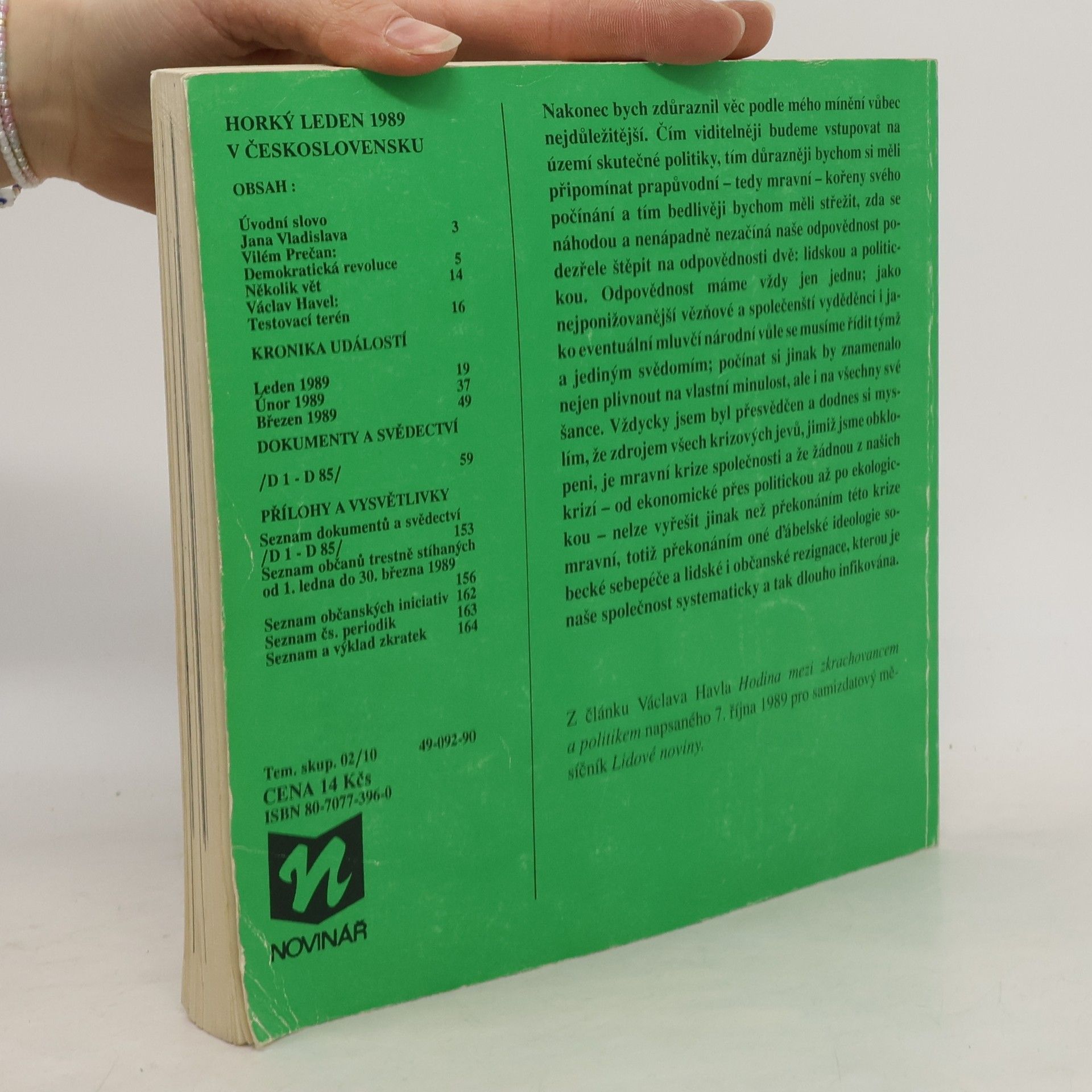Publikace slovem i obrazem zevrubně dokumentuje pražské události spojené s 20. výročím smrti Jana Palacha. Publikace vychází jako zvláštní číslo obnoveného časopisu Reportér nakladatelství Novinář. Obsahuje dokumenty k událostem, k nimž u nás došlo v lednu roku 1989 v souvislosti s 20. výročím smrti Jana Palacha. Jde především o chronologický přehled událostí v jednotlivých dnech. Dále jsou zahrnuty svědectví očitých svědků, články v tisku, různá provolání, projevy, prohlášení, otevřené dopisy a jiné akce nezávislých občanských iniciativ.