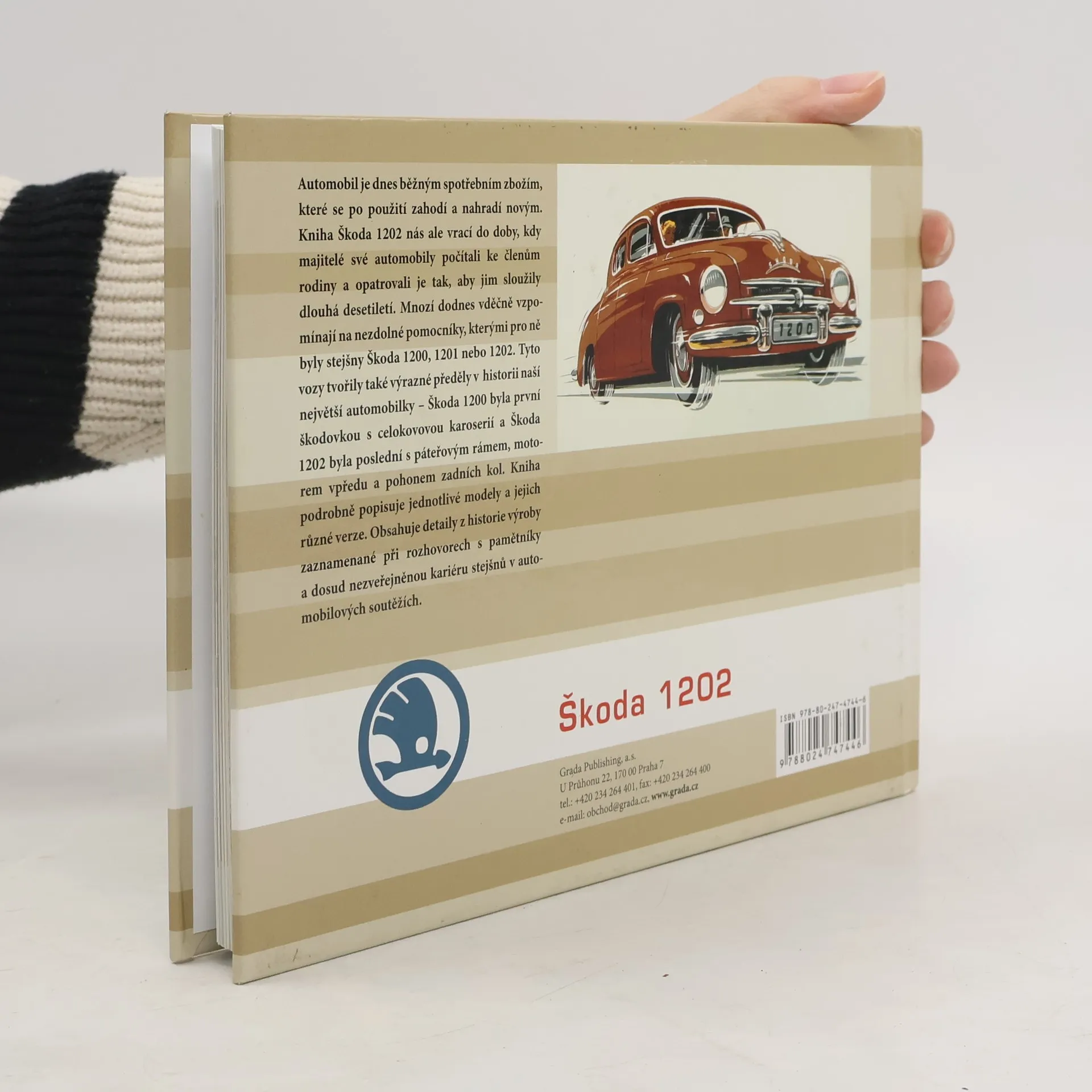Automobil je dnes běžným spotřebním zbožím, které se po použití zahodí a nahradí novým. Kniha Škoda 1202 nás ale vrací do doby, kdy se automobily počítaly ke členům rodiny a byly opatrovány tak aby svému majiteli sloužily dlouhá desetiletí. Mnozí dodnes vděčně vzpomínají na nezdolné pomocníky, kterými pro ně byly stejšny Škoda 1200, 1201 nebo 1202. Představovaly také výrazné předěly v historii naší největší automobilky - Škoda 1200 byla první škodovkou s celokovovou karoserií a Škoda 1202 byla poslední s páteřovým rámem, motorem vpředu a pohonem zadních kol. Kniha podrobně popisuje jednotlivé modely a jejich různé verze. Obsahuje detaily z historie výroby zaznamenané při rozhovorech s pamětníky a dosud nezveřejněnou kariéru stejšny v automobilových soutěžích.