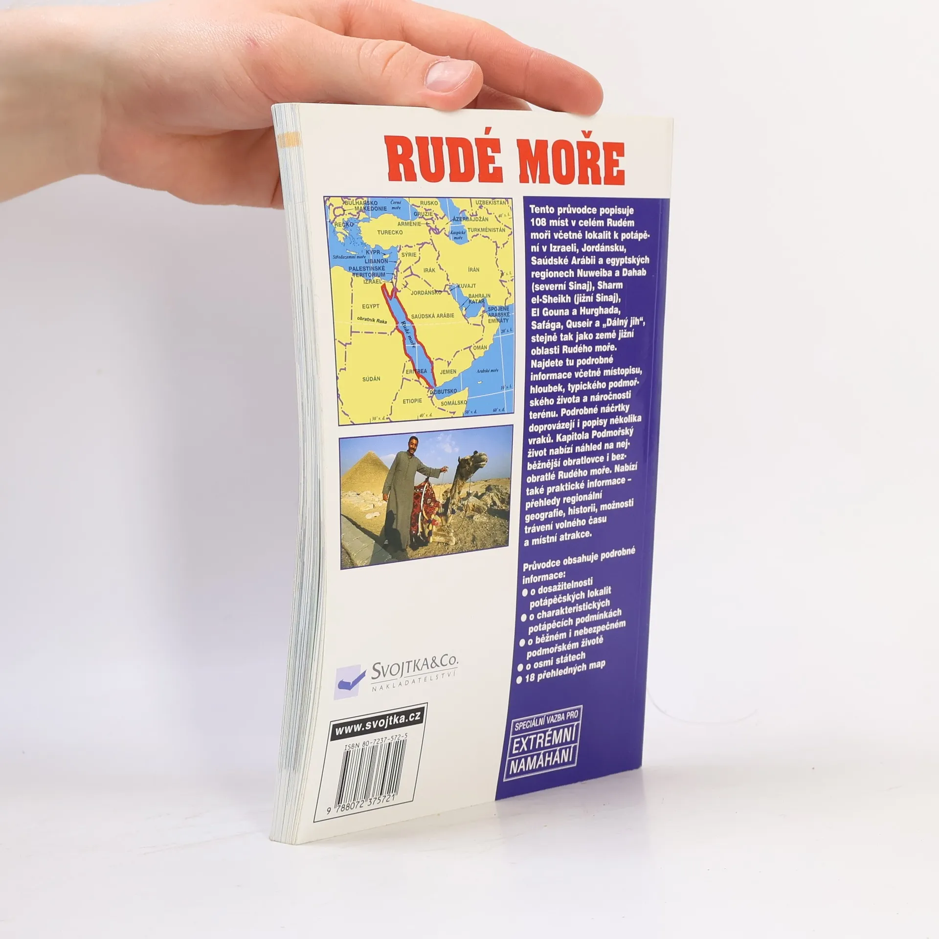 Nejkrásnější potápěčská místa v Egyptě, Izraeli, Jordánsku, Súdánu, Eritreji, Jemenu a Džibuti. Průvodce obsahuje informace o potápěčských lokalitách v celém Rudém moři, o podmínkách potápění i o místopisu, geografii a historii zemí na jeho pobřeží. Popisuje 108 míst v celém Rudém moři a obsahuje podrobné informace o dosažitelnosti potápěčských lokalit, o charakteristických potápěčských podmínkách, o podmořském životě. Provede Vás osmi státy, obsahuje 18 přehledných map.