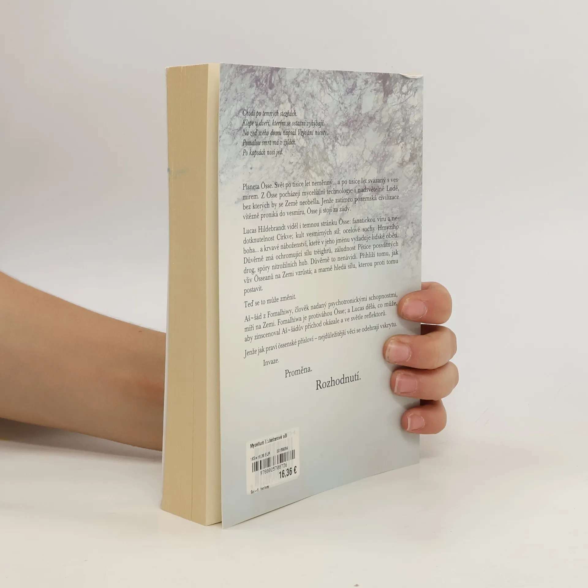 Lidstvo navázalo styky s planetou Össe a začalo využívat tamní myceliální technologie. Zatím se úspěšně daří ignorovat nepříjemnosti, které s sebou kontakt s teokratickou civilizací Össeanů přináší: kult vesmírných Lodí, krvavé lidské oběti ve jménu Hmyzího boha, spóry nitrožilních hub a rituální drogy, rozkládající lidskou vůli. Lucas Hildebrandt, který jako vyslanec důvěrně poznal tamní svět, si ale dobře uvědomuje, že Země začíná být na Össe závislá. Proto hledá sílu, která by se mohla stát protiváhou össenské moci. Skutečně ji nachází – jenže je jiná, než předpokládal; a cena, kterou za to on sám musí zaplatit, je krutá. Mycelium je románová sága odehrávající se ve 26. století na Zemi.