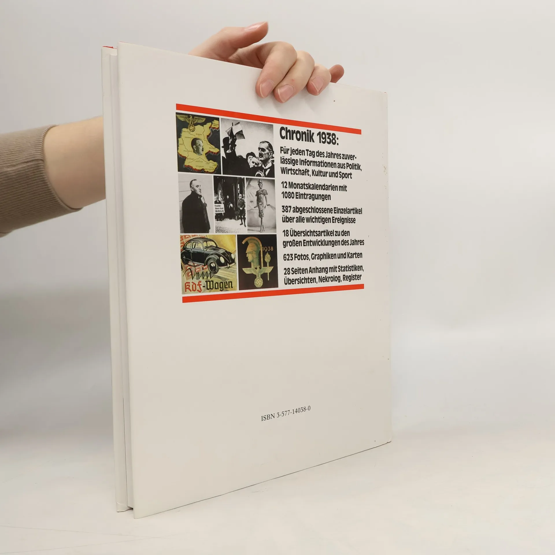Der vorliegende Band führt sie zuverlässig durch das Jahr 1938 und gibt Ihnen einen vollständigen Überblick über die weltweit wichtigsten Ereignisse in Politik und Wirtschaft, Kultur und Sport, Alltag und Gesellschaft. Die Fülle von Artikeln, Kalendereinträgen. Fotos, Graphiken und Übersichten nach einheitl. Kriterien macht damit die Daten dieses Bandes unvergleichbar.
