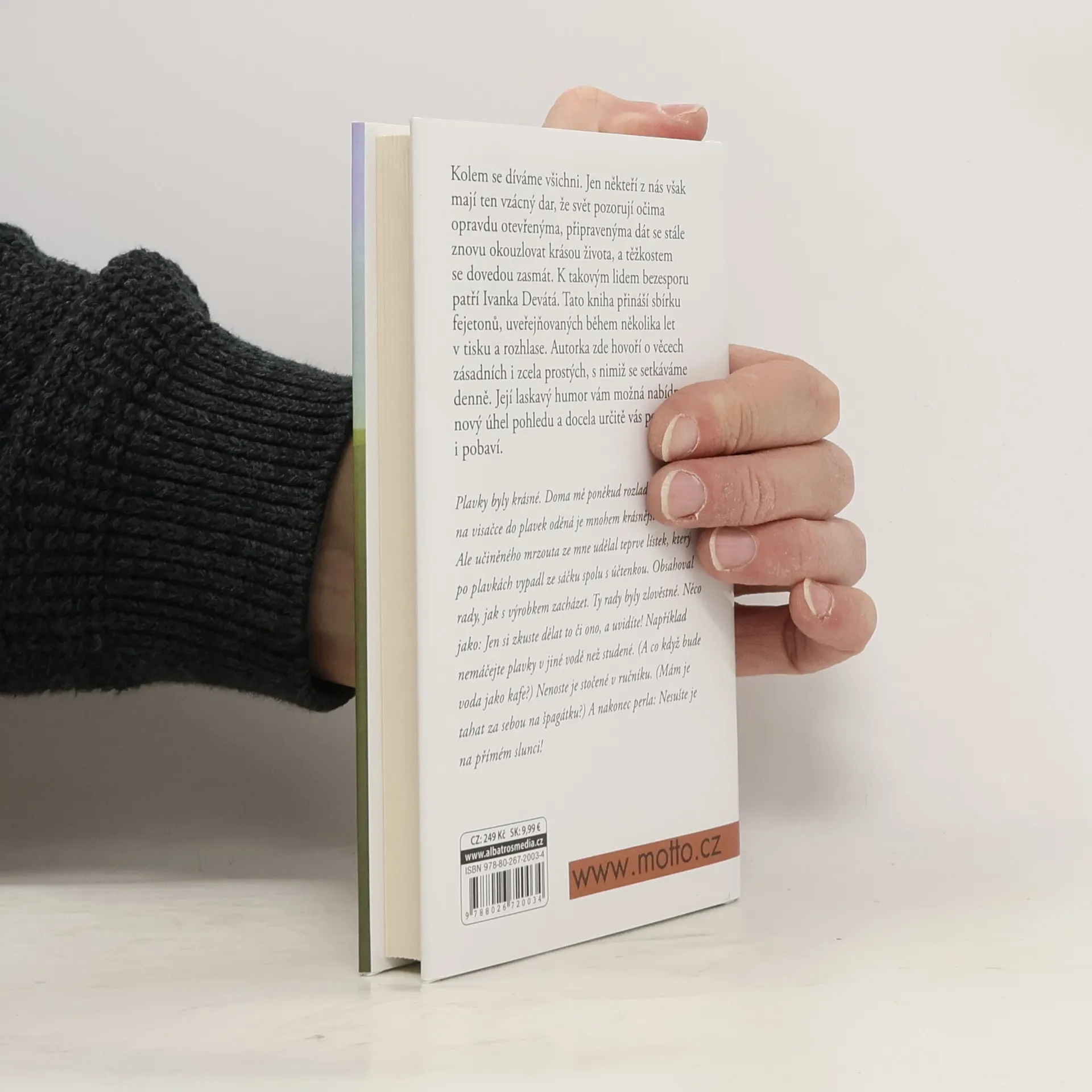 Sbírka fejetonů, ve kterých autorka hovoří o věcech zásadních i zcela prostých, s nimiž se setkáváme denně. Její laskavý humor vám možná nabídne nový úhel pohledu a docela určitě vás potěší i pobaví.
