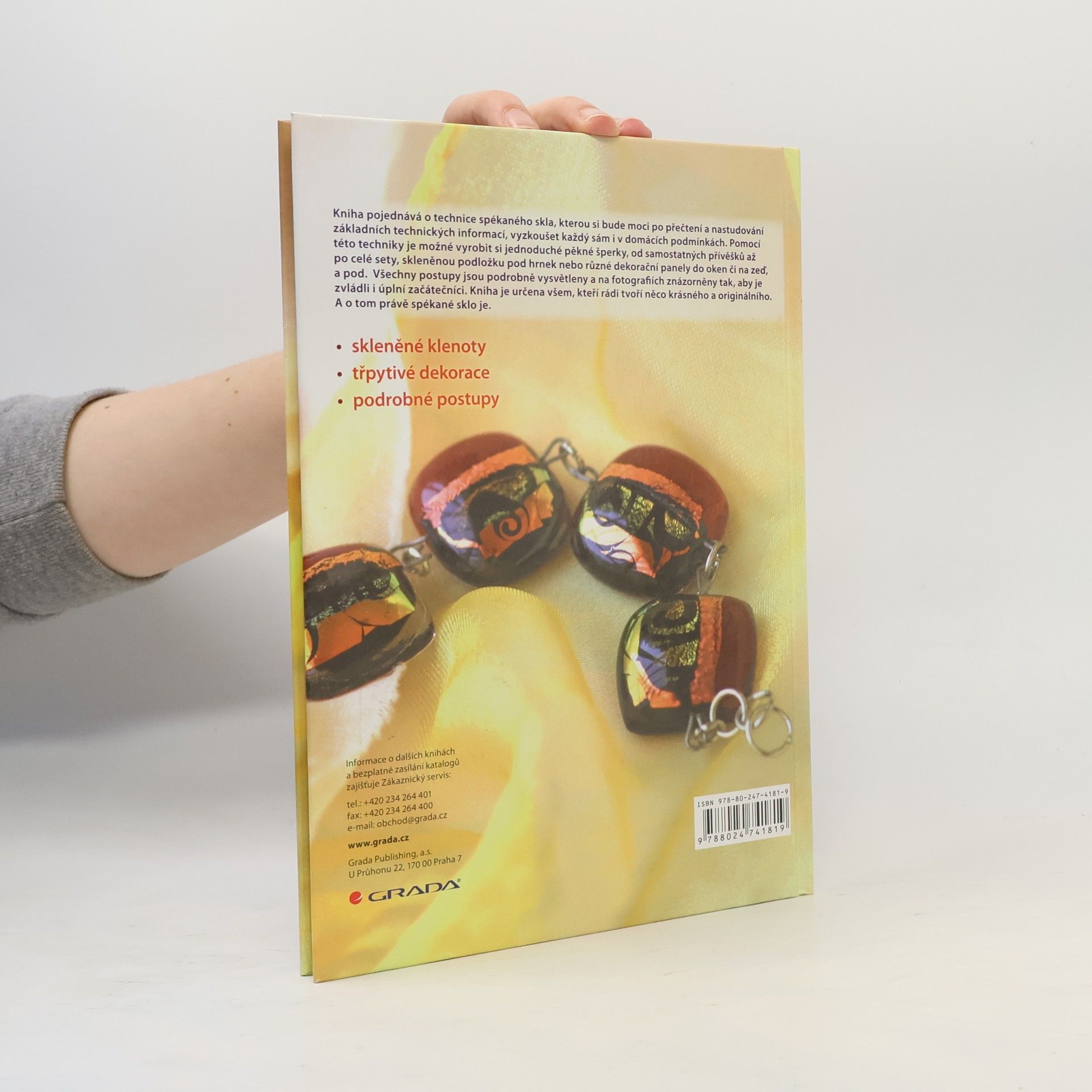 Kniha pojednává o technice spékaného skla, kterou si bude moci po přečtení a nastudování základních technických informací, vyzkoušet každý sám i v domácích podmínkách. Pomocí této techniky je možné vyrobit si jednoduché pěkné šperky, od samostantných přívěšků až po celé sety, skleněnou podložku pod hrnek nebo různé dekorační panely do oken či na zeď, a pod. Všechny postupy jsou podrobně vysvětleny a na postupových fotografiích znázorněny tak, aby je zvládli i naprostí začátečníci. Kniha je určena všem, kteří rádi tvoří něco krásného a originálního. A o tom právě spékané sklo je.