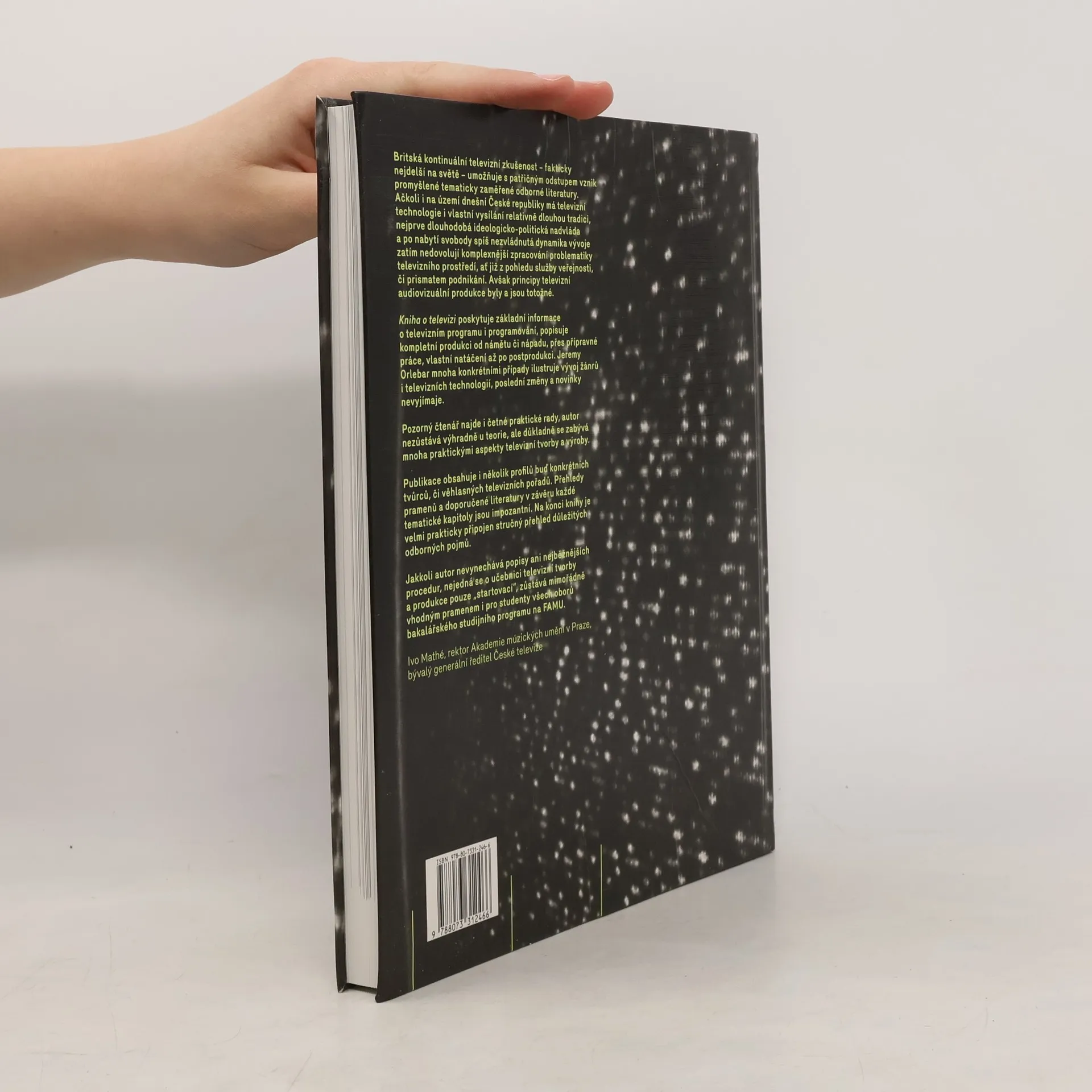 Obsáhlá kniha na pomezí teoretické reflexe televize a praktické příručky pro ty, kdo v televizi pracují anebo budou pracovat. Je překladem čtvrtého vydání britské The Television Handbook. Zachycuje nedávný i současný vývoj televizního vysílání a způsobů jeho zkoumání. Uvádí do problematiky, přináší důležité informace o vývoji současné televize i o některých klíčových oblastech výzkumu v rámci akademického oboru televizních studií. Detailněji se zaměřuje na praxi televizních tvůrců a institucí, pro něž tvůrci pracují, na oblasti programu a otázky, jež jsou v centru pozornosti současné výuky v oboru televize.