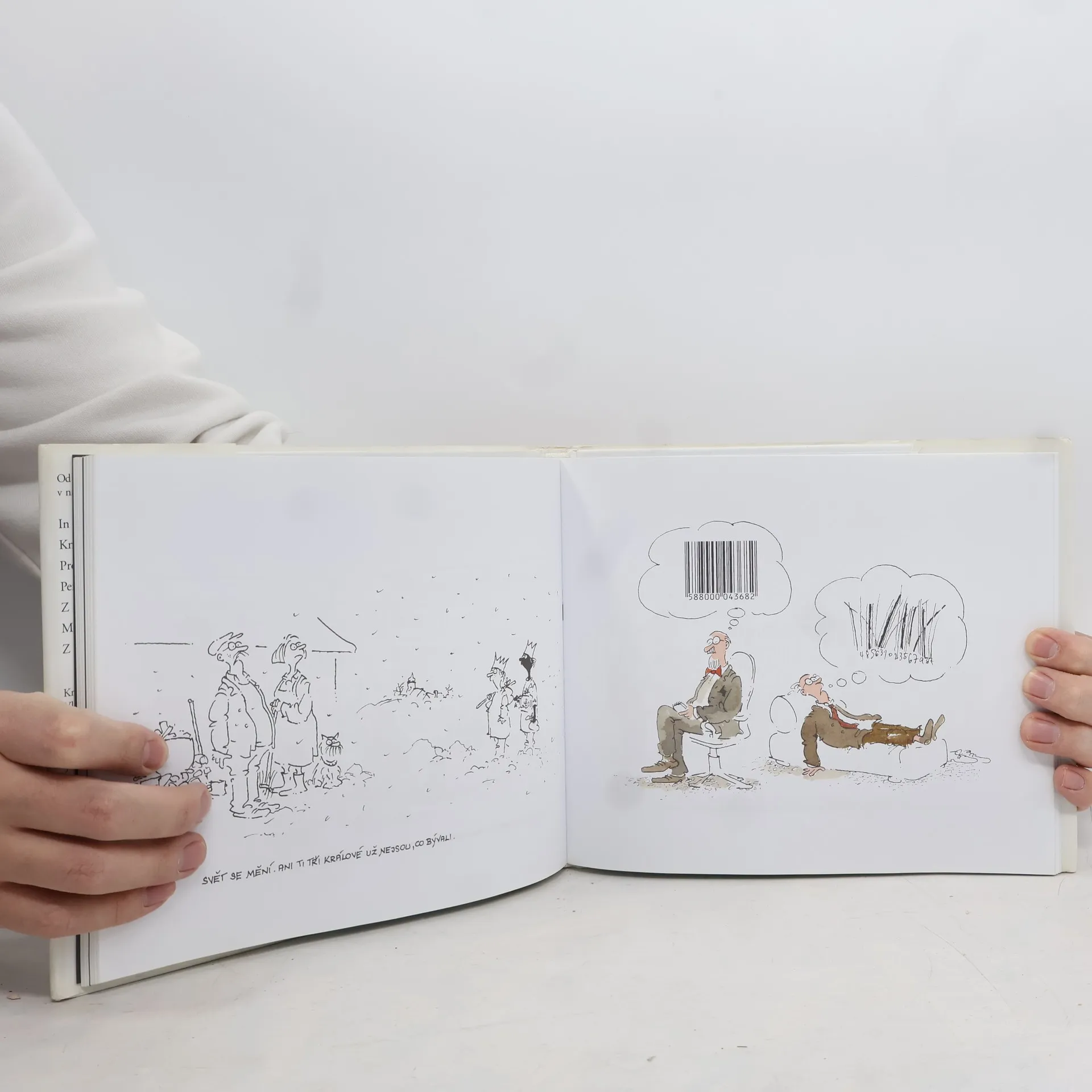 Znáte to: "Mám pro tebe dvě zprávy..." Tak nejen v tomto duchu se odvíjí výpravná (a rozměrná) kniha kreseb legendy současného českého humoru, zahrnující barevné i černobílé obrázky s nezaměnitelnými postavami.