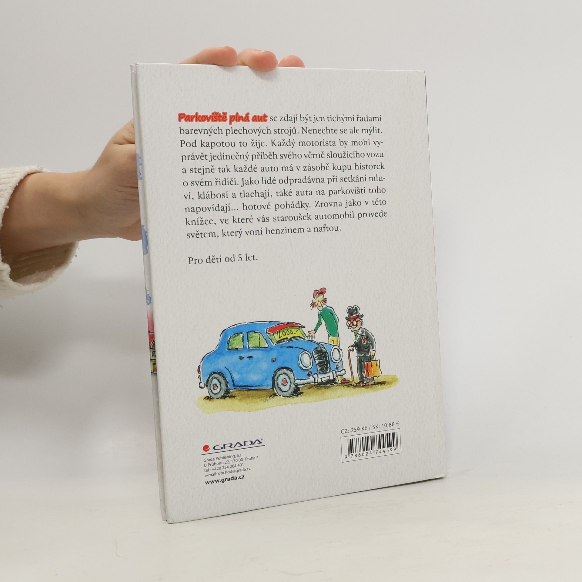 Parkoviště plná aut se zdají být jen tichými řadami barevných plechových strojů. Nenechte se ale mýlit. Pod kapotou to žije. Každý motorista by mohl vyprávět jedinečný příběh svého věrně sloužícího vozu a stejně tak každé auto má v zásobě kupu historek o svém řidiči. Jako lidé odpradávna při setkání mluví, klábosí a tlachají, také auta na parkovišti toho napovídají... hotové pohádky. Zrovna jako v této knížce, ve které vás staroušek automobil provede světem, který voní benzinem a naftou.