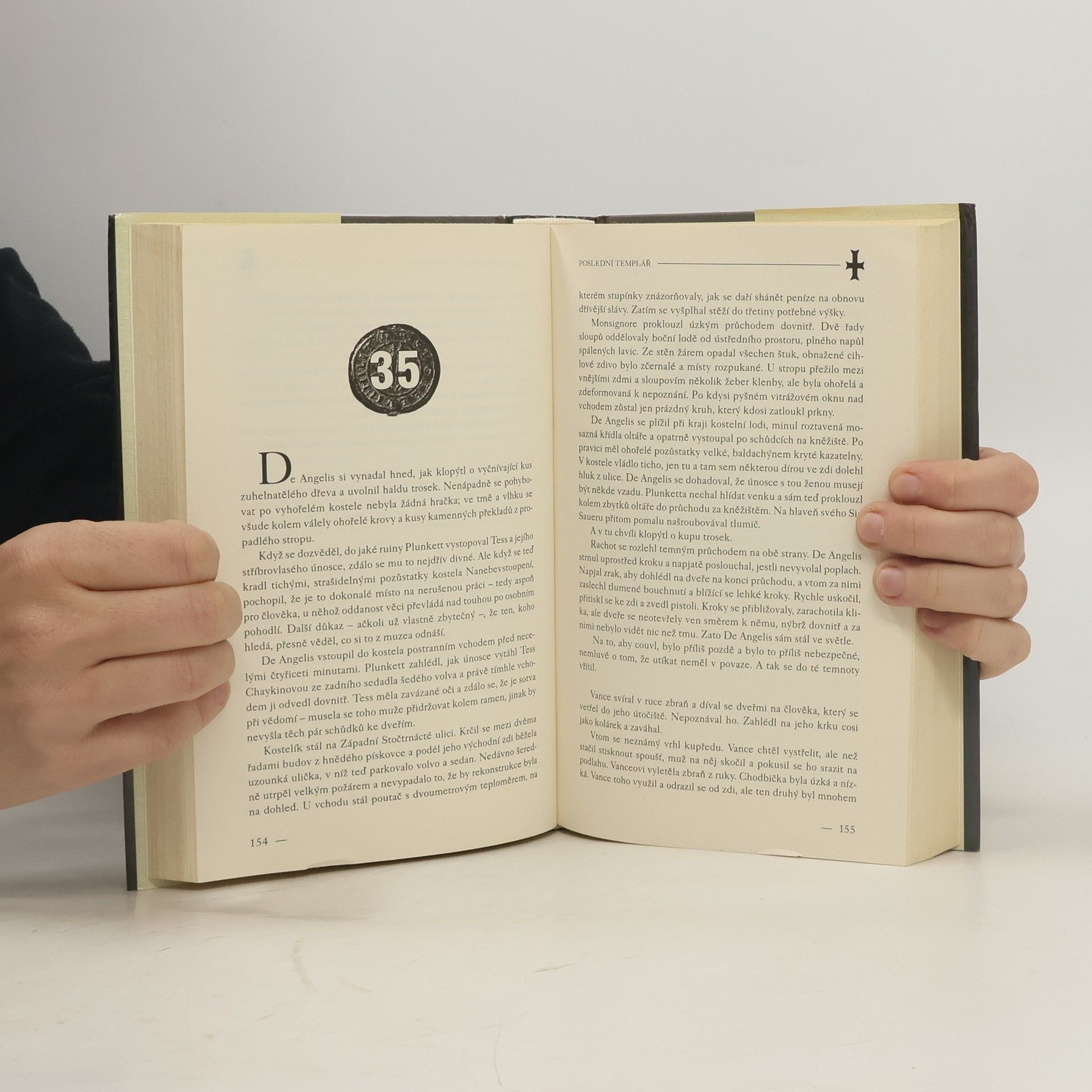 Detektivní thriller o hledání tajuplného templářského artefaktu, ukradeného při loupežném přepadení newyorského muzea. V Metropolitním muzeu v New Yorku se připravuje ojedinělá výstava - vystavovány mají být poklady ukryté po staletí za zdmi Vatikánu. Ale již při vernisáži vnikne i přes všechna bezpečnostní opatření do muzea čtveřice ozbrojených mužů, pozabíjí a zraní mnoho návštěvníků a několik cenných artefaktů ukradne. Do pátrání po zločincích se pustí nejen FBI, ale i archeoložka - očitá svědkyně krádeže, a církev, stojící za každou cenu o navrácení jednoho z odcizených předmětů. Ten by totiž mohl odhalit dlouho ukrývané tajemství zpochybňující samotné základy křesťanství. Vcelku čtivě napsaná kniha s detektivní zápletkou a konspirační teorií čerpající inspiraci z historie tajuplného templářského řádu. Chybět samozřejmě nesmí přitažlivost mezi vyšetřovatelem FBI a důvtipnou archeoložkou.