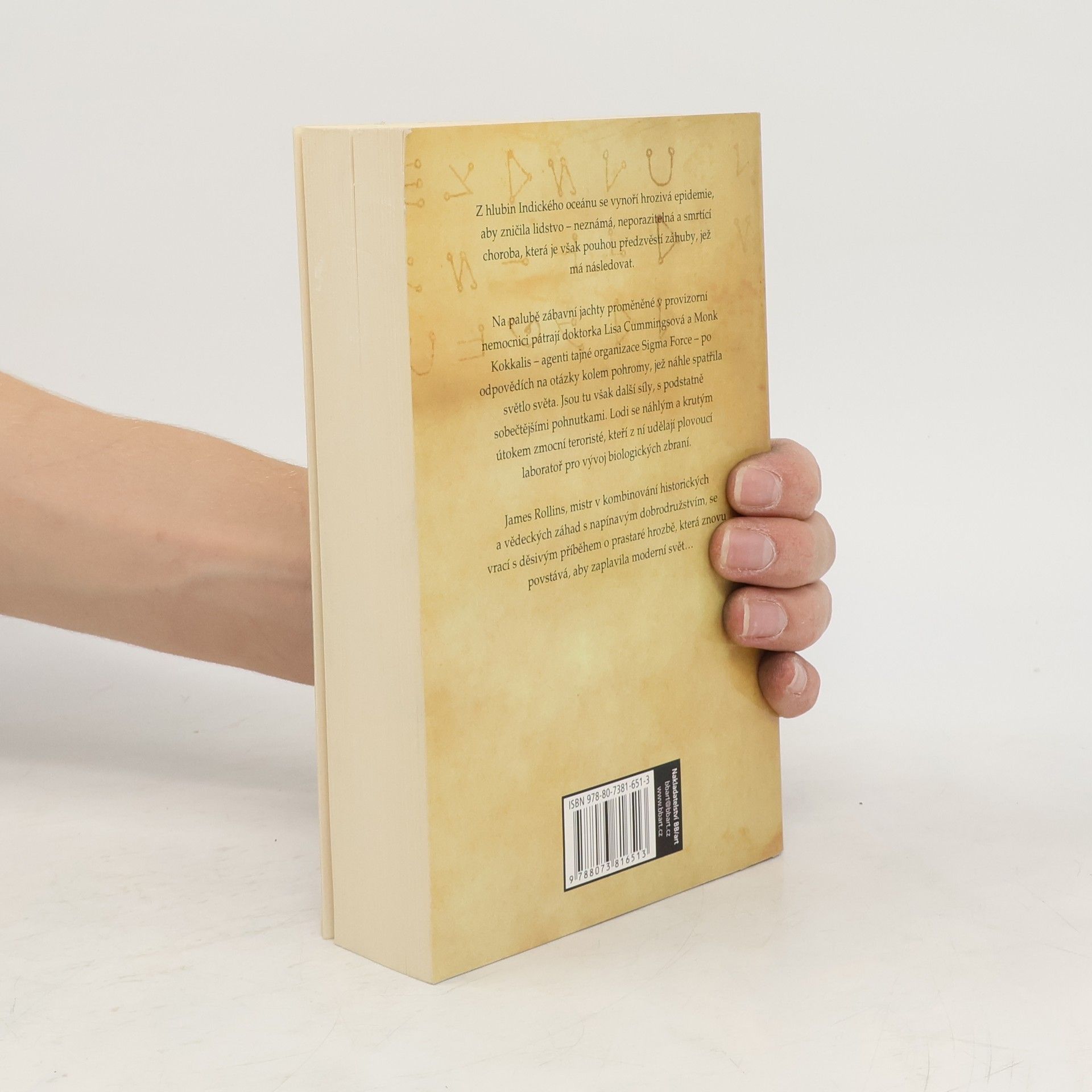 Z hlubin Indického oceánu se vynoří hrozivá epidemie, aby zničila lidstvo - neznámá, neporazitelná a smrtící choroba, která je však pouhou předzvěstí záhuby, jež má následovat. Na palubě zábavní jachty proměněné v provizorní nemocnici pátrají doktorka Lisa Cummingsová a Monk Kokkalis - agenti tajné organizace Sigma Force - po odpovědích na otázky kolem pohromy, jež náhle spatřila světlo světa. Jsou tu však další síly, s podstatně sobečtějšími pohnutkami. Lodi se náhlým a krutým útokem zmocní teroristé, kteří z ní udělají plovoucí laboratoř pro vývoj biologických zbraní. James Rollins, mistr v kombinování historických a vědeckých záhad s napínavým dobrodružstvím, se vrací s děsivým příběhem o prastaré hrozbě, která znovu povstává, aby zaplavila moderní svět.