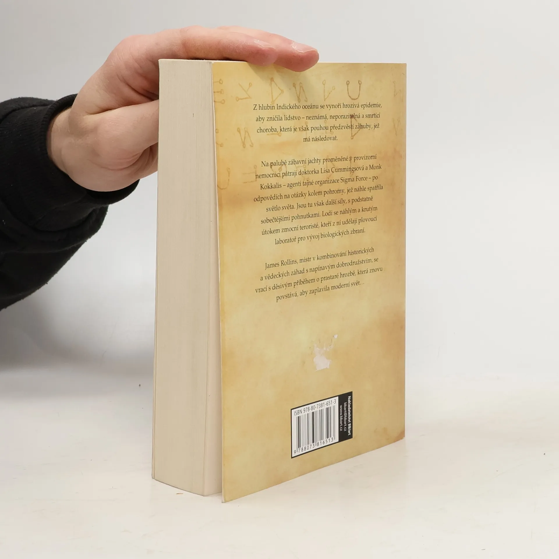 Z hlubin Indického oceánu se vynoří hrozivá epidemie, aby zničila lidstvo - neznámá, neporazitelná a smrtící choroba, která je však pouhou předzvěstí záhuby, jež má následovat. Na palubě zábavní jachty proměněné v provizorní nemocnici pátrají doktorka Lisa Cummingsová a Monk Kokkalis - agenti tajné organizace Sigma Force - po odpovědích na otázky kolem pohromy, jež náhle spatřila světlo světa. Jsou tu však další síly, s podstatně sobečtějšími pohnutkami. Lodi se náhlým a krutým útokem zmocní teroristé, kteří z ní udělají plovoucí laboratoř pro vývoj biologických zbraní. James Rollins, mistr v kombinování historických a vědeckých záhad s napínavým dobrodružstvím, se vrací s děsivým příběhem o prastaré hrozbě, která znovu povstává, aby zaplavila moderní svět.