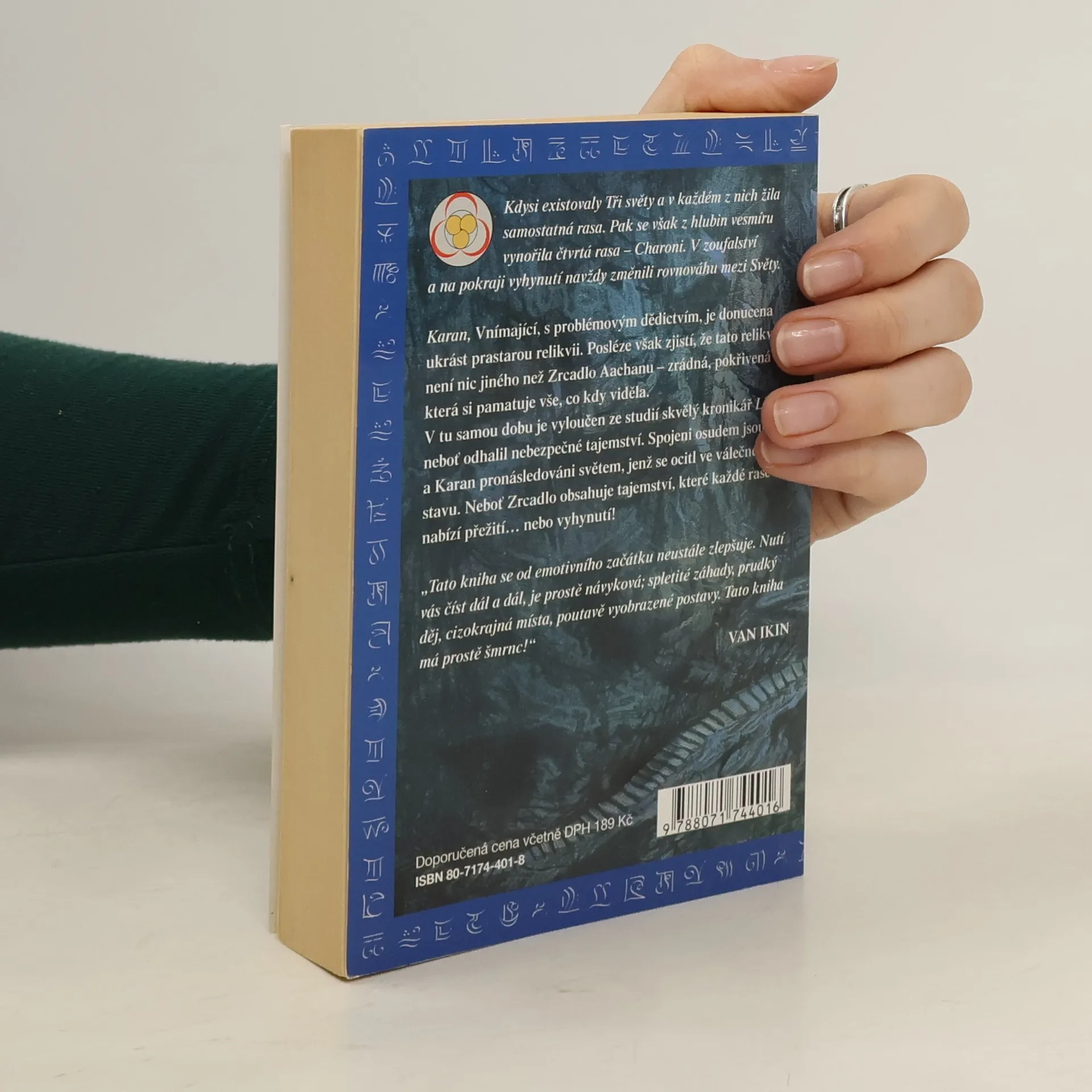 Kdysi existovaly Tři světy a v každém z nich žila samostatná rasa. Pak se však z hlubin vesmíru vynořila čtvrtá rasa – Charoni. V zoufalství a na pokraji vyhynutí navždy změnili rovnováhu mezi Světy. Karan, Vnímající, s problémovým dědictvím, je donucena ukrást prastarou relikvii. Posléze však zjistí, že tato relikvie není nic jiného než Zrcadlo Aachanu – zrádná, pokřivená věc, která si pamatuje vše, co kdy viděla. V tu samou dobu je vyloučen ze studií skvělý kronikář Lian, neboť odhalil nebezpečné tajemství. Spojeni osudem jsou Lian a Karan pronásledováni světem, jenž se ocitl ve válečném stavu. Neboť Zrcadlo obsahuje tajemství, které každé rase nabízí přežití… nebo vyhynutí!