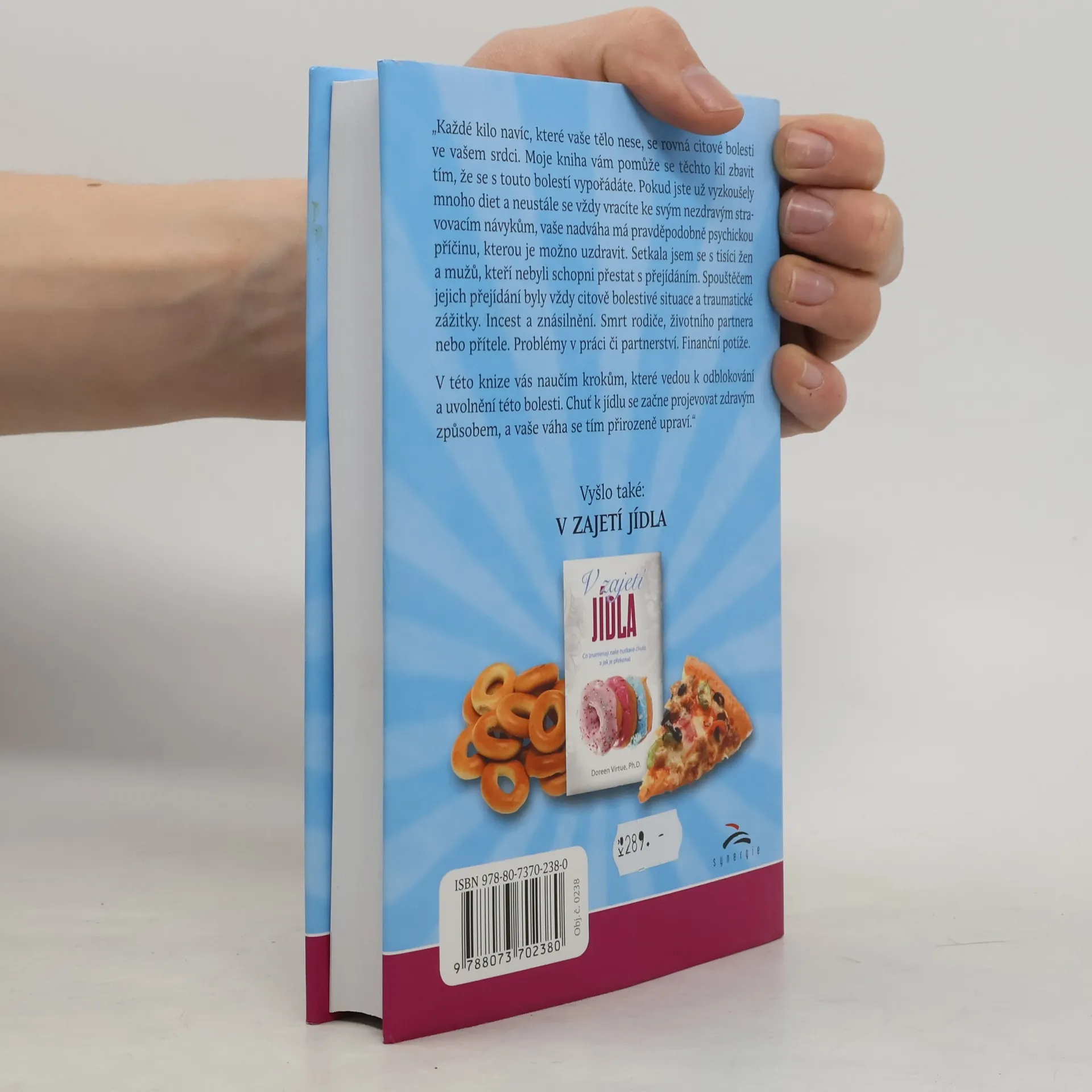 V této knížce vám, dnes již světově proslulá, andělská terapeutka Doreen Virtue, Ph.D. přináší své zkušenosti posbírané během mnoha let své terapeutické práce ředitelky dvou klinik, zabývajících se léčbou poruch, spojených se stravováním. Tato jedinečná kniha vám pomůže přerušit škodlivé spojení mezi emocionální bolesti, stresem, traumatickými zážitky z dětství a přejídáním. Pokud jste už vyzkoušely mnoho diet a neustále se vždy znovu vracíte ke svým nezdravým stravovacím návykům, vaše nadváha má pravděpodobně psychickou příčinu, kterou je možné uzdravit.