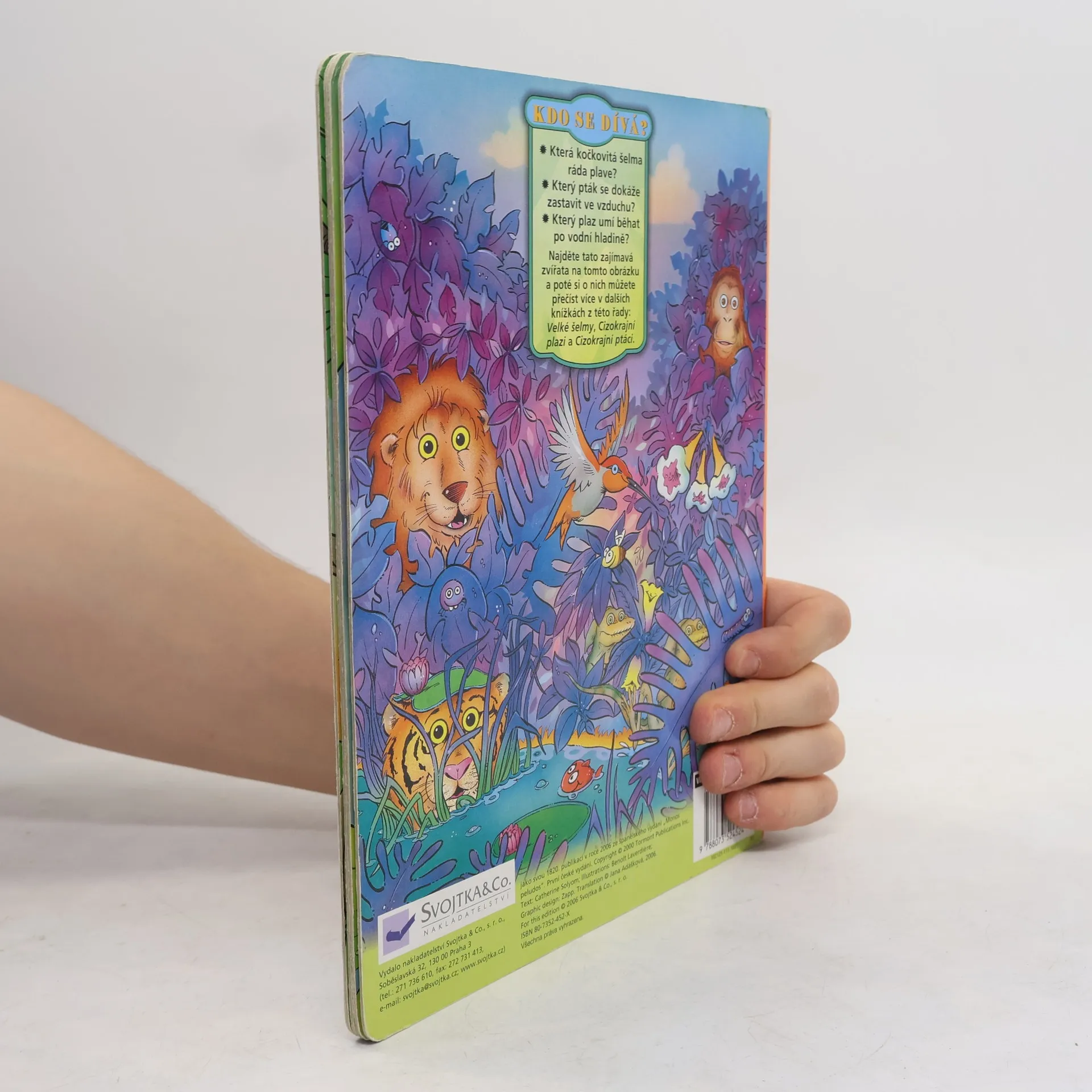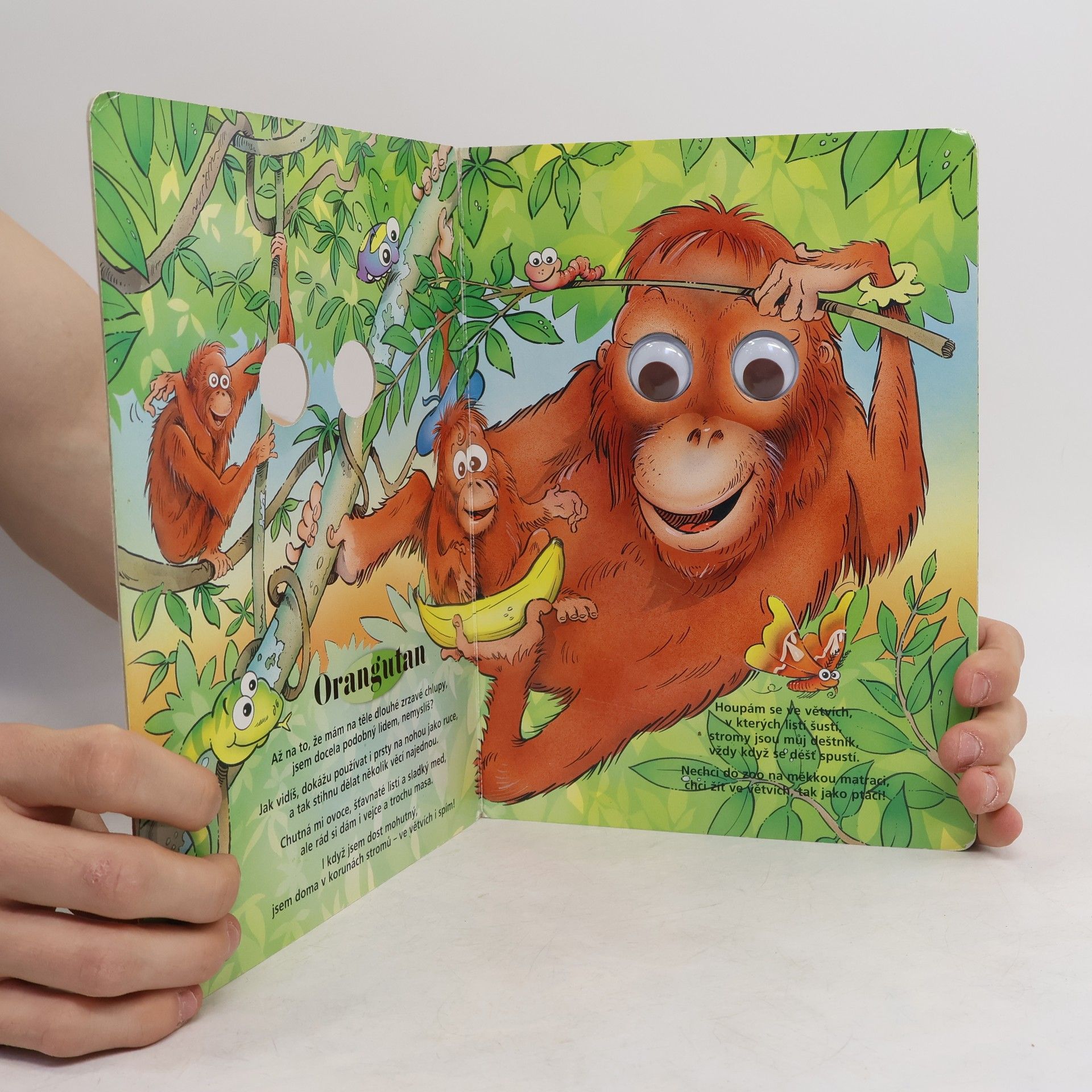 Toto leporelo vám představí cizokrajné savce. Orangutan, mandril, kahau nosatý – o každém se v této knížce dozvíte. Jakou barvu srsti mají, jestli umí používat prsty na nohou jako ruce, co jim chutná a kde spí. S touto knihou zažijete i mnoho zábavy – zvířátka mají plastové oči s pohyblivými panenkami.
