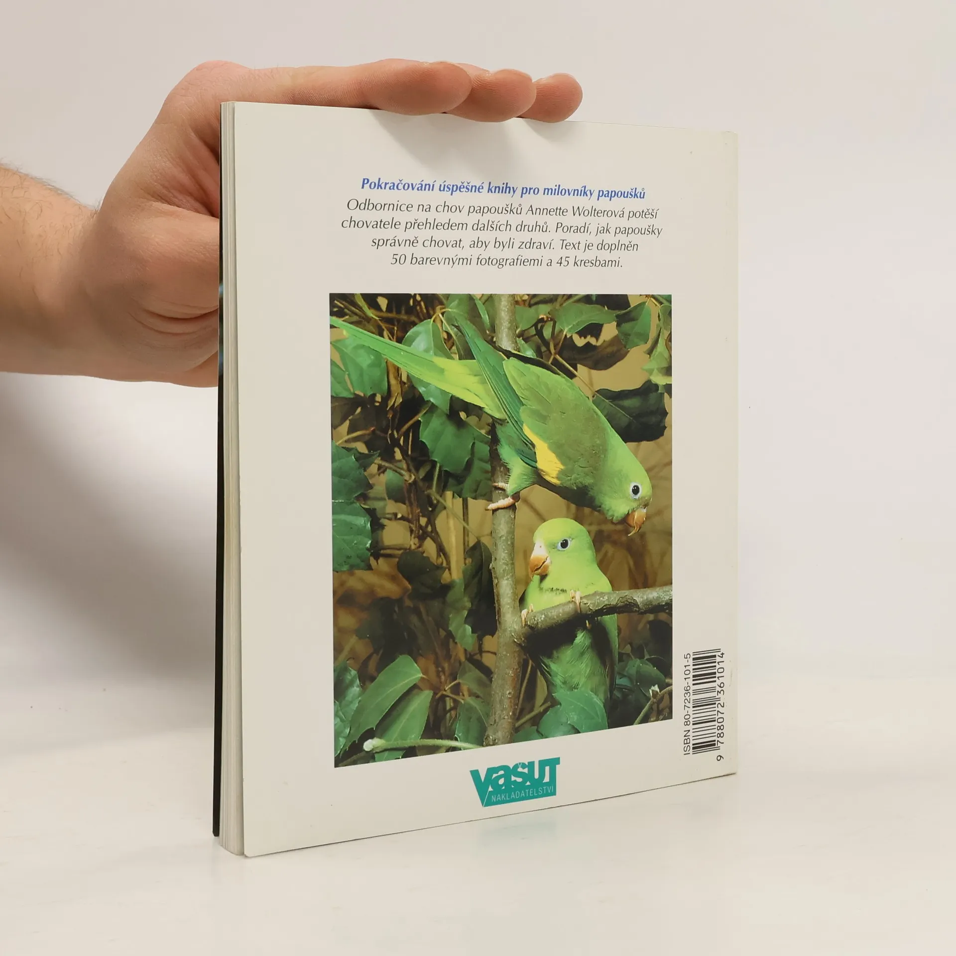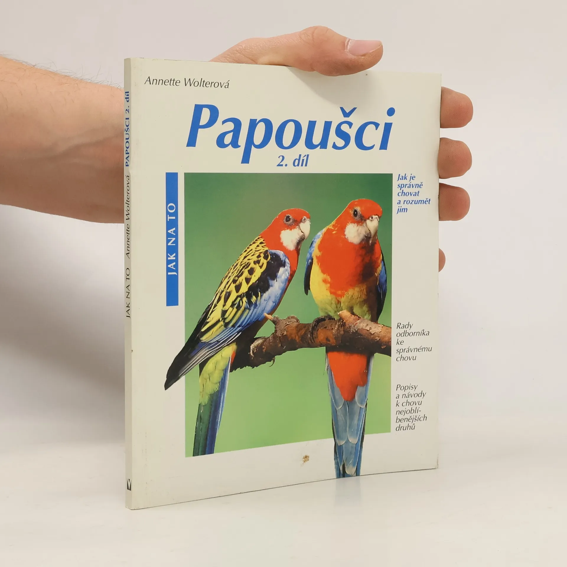 Podtitul: Jak je správně chovat a rozumět jim Pokračování úspěšné knihy pro milovníky papoušků. Odbornice na chov papoušků Annette Wolterová potěší chovatele přehledem dalších druhů. Poradí, jak papoušky správně chovat, aby byli zdraví. Text je doplněn 50 fotografiemi a 45 kresbami.