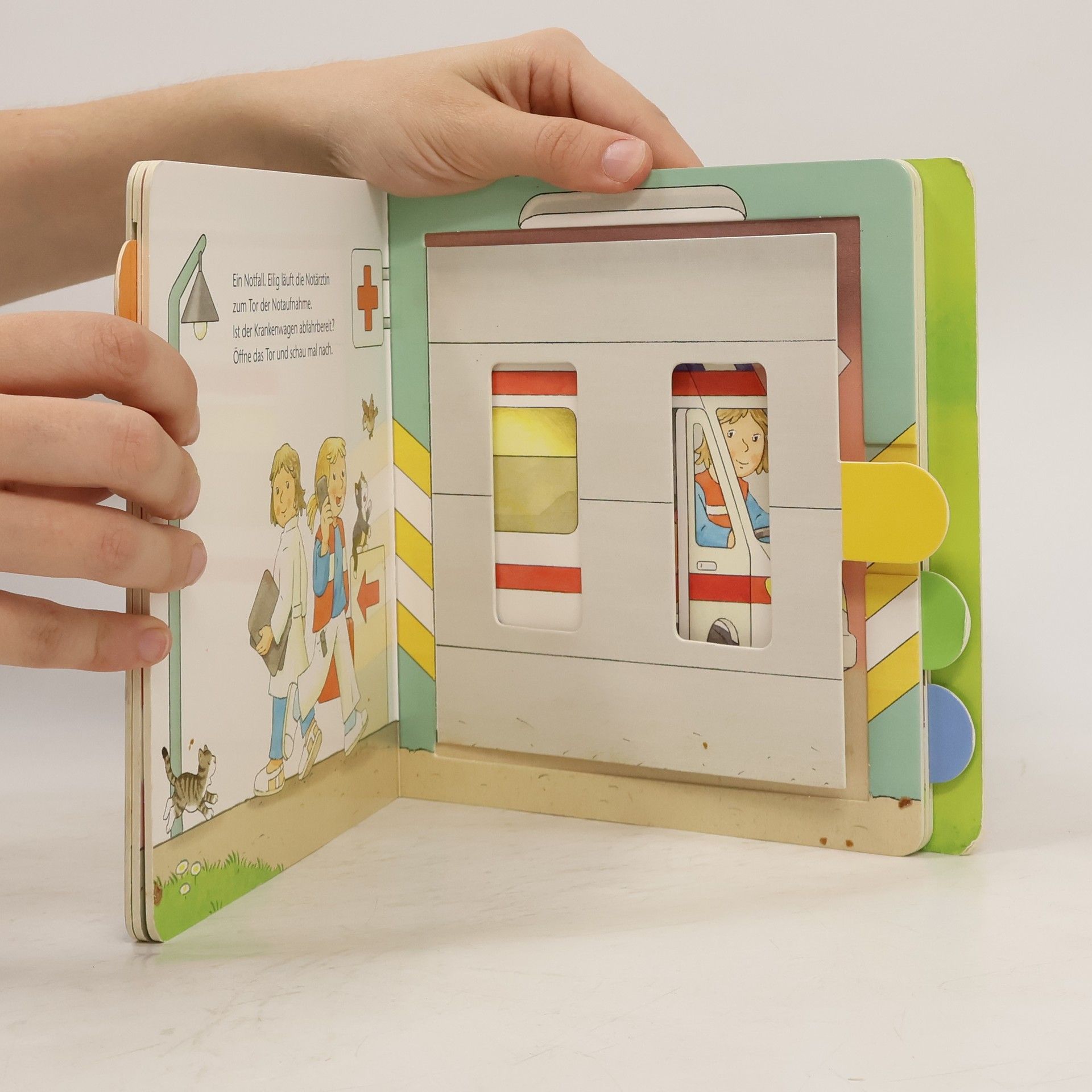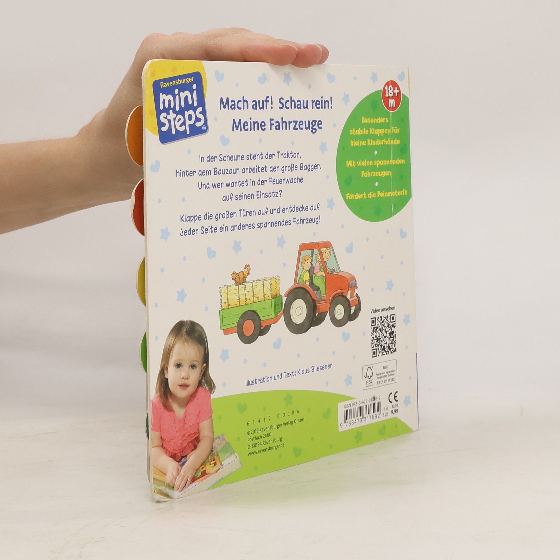 Extragroße und stabile Klappen auf jeder Seite bieten spannende Einblicke hinter verschiedene Türen und Tore: Auf der Baustelle steht der Bagger bereit, und hinter dem Scheunentor fährt der Traktor heraus. Diese Klappentüren sind speziell für kleine Kinderhände konzipiert und ermöglichen es den Kleinsten, sie kinderleicht zu öffnen. Das Buch zeigt abwechslungsreiche Fahrzeugszenen und fördert spielerisch die Feinmotorik der Kinder. Die leicht zu öffnenden Klappen sind so gestaltet, dass auch Kinder ab 18 Monaten sie problemlos bedienen können, ohne dass etwas beschädigt wird. Ein seitliches Register hilft beim Finden der Lieblingsseite. Hinter jeder Klappe verbirgt sich ein spannendes Fahrzeug: der Traktor in der Scheune, das Feuerwehrauto auf der Wache und das Wohnmobil in der Garage. Unterschiedliche Fahrzeugthemen wecken die Neugier auf die Entdeckungen. Kurze Texte beschreiben die verschiedenen Situationen und regen die Fantasie an, während Gucklöcher kleine Hinweise auf die Fahrzeuge geben. Dieses Buch ist optimal auf die Entwicklung von Kleinkindern abgestimmt. Es wurde von Pädagogen entwickelt und fördert die Kinder altersgerecht und mit viel Spaß!
