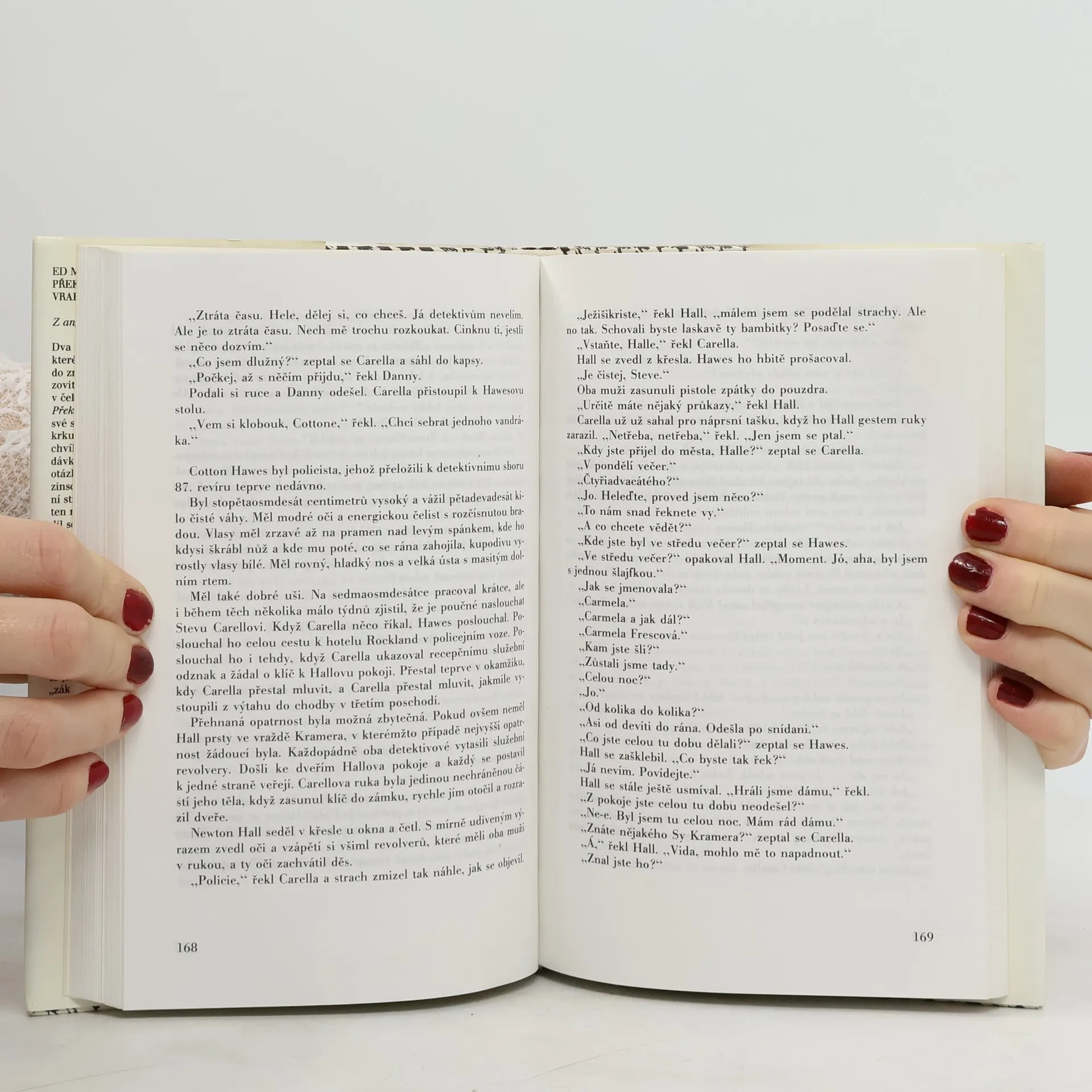 Ve svém pokoji je nalezen mrtvý překupník drog. Vše nasvědčuje tomu, že se mladík oběsil. Detektivové z 87. revíru v čele se Stevem Carellou však zakrátko zjistí, že jde pouze o fingovanou sebevraždu, protože oběť ve skutečnosti zemřela na předávkování heroinem. Někdo se snaží policisty přelstít. Detektivové stojí před řadou otázek. Kdo se je snaží svést na falešnou stopu? Proč chtěl neznámý pachatel vyvolat dojem, že překupník odešel ze života dobrovolně? Komu patří otisky prstů na injekční stříkačce, kterou policie našla vedle mrtvého? Kdo nastoupil na mladíkovo místo v obchodu s drogami ve městě? Kdo zavraždil překupníkovu sestru Marii? A kdo má na svědomí výhrůžné telefonáty, které přicházejí na policii? Do hledání nebezpečného pachatele se pouštějí detektivové Carella a Byrnes. Vědí, že musejí jednat rychle a zároveň nesmírně opatrně, protože i jim jde o život. Byl pohledný, elegantní, zazobaný – ale mrtvý! Vyděrač Sy Kramer, který zašel příliš daleko, vyfasoval svůj poslední žold – kulku do hlavy. Která z jeho obětí měla tolik co ztratit, že musela vraždit? Je to politikova přitažlivá manželka? Nebo majitel podniku na limonády? Nebo je to ona neznámá oběť, která zajistila Kramerovi tučné vklady na spořitelní knížce? Třeba je to jiný vyděrač, který převzal Kramerovy „zákazníky“.