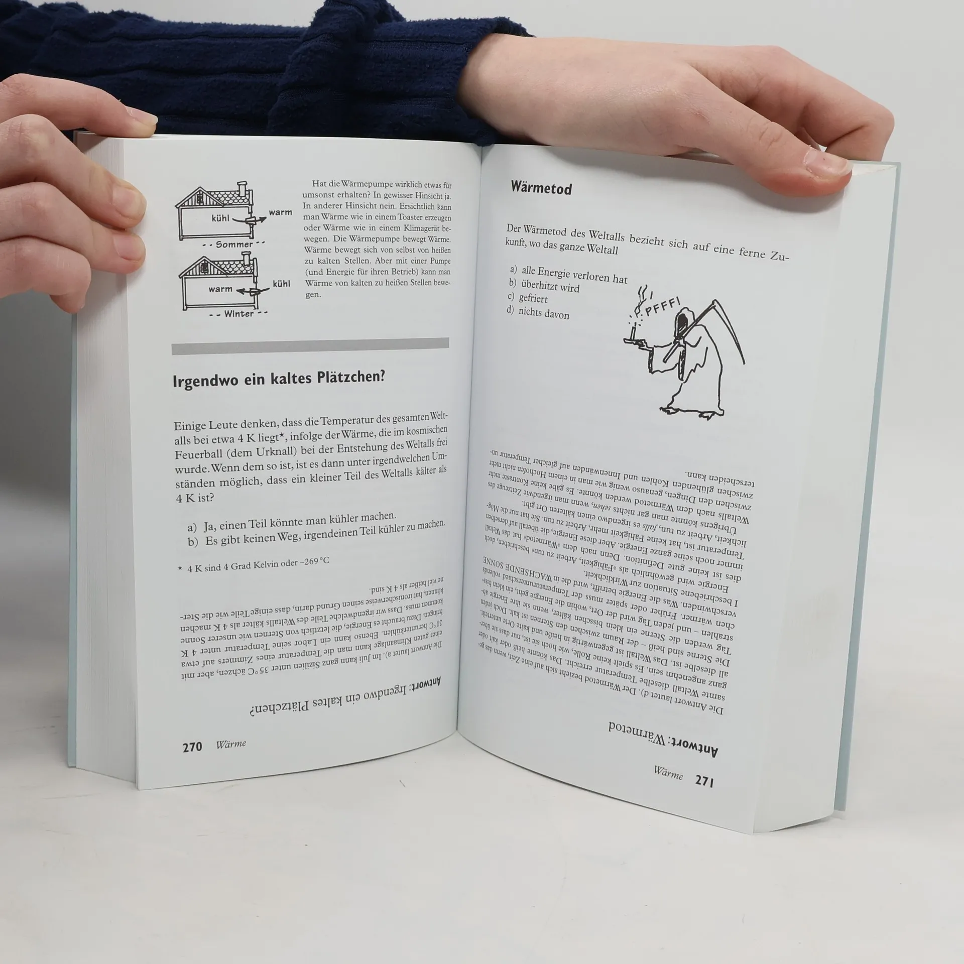 In der Schule hört man in der Regel zuerst die Antworten und bekommt in der Prüfung die Fragen vorgelegt. Lewis C. Epstein geht anders vor. Er stellt zuerst die Frage, und nicht nur das, er schlägt gleich mehrere Antworten vor. Man kann erst mal selbst nachdenken und dann nachsehen, ob man richtig liegt. In die Antworten packt Epstein die Grundideen der Physik – und dies praktisch ohne Formeln. So bekommt man spielerisch eine Lösung für sämtliche physikalischen Fragen von der Funktion einer Glühbirne oder einer Toilettenspülung bis zur Relativitätstheorie und verständliche Erklärungen für alles, worauf man sich keinen Reim machen kann. Ursprünglich nur für Schüler und Studenten gedacht, hat sich Epsteins Buch inzwischen zum populären Physik-Klassiker für Laien und Fachleute entwickelt.