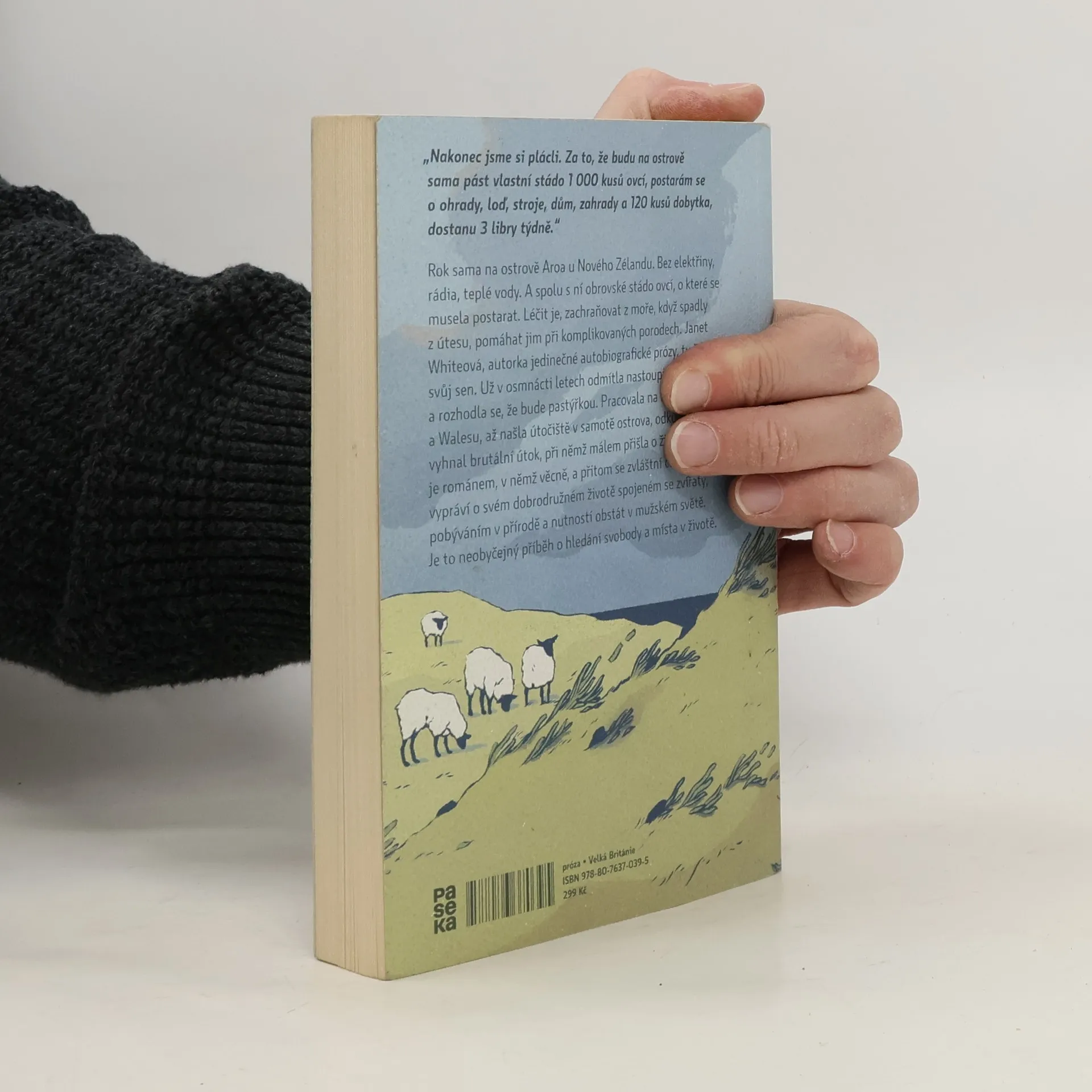 Rok sama na ostrově Aroa u Nového Zélandu. Bez elektřiny, rádia, teplé vody. A spolu s ní obrovské stádo ovcí, o které se musí postarat. Léčit je, zachraňovat z moře, když spadly z útesu, pomáhat jim při komplikovaných porodech. Janet White, autorka jedinečné autobiografické prózy, tu žila svůj sen. V osmnácti letech odmítla nastoupit na univerzitu v Cambridgi a rozhodla se, že bude pastýřkou. Pracovala na farmách v Anglii a Walesu, až našla útočiště v samotě ostrova, odkud ji nakonec vyhnal brutální útok, při němž málem přišla o život. Pastýřka je románem, v němž věcně, a přitom se zvláštní citlivostí vypráví o svém dobrodružném životě spojeném se zvířaty, pobýváním v přírodě a nutností obstát v mužském světě. Je to neobyčejný příběh o hledání svobody a místa v životě.