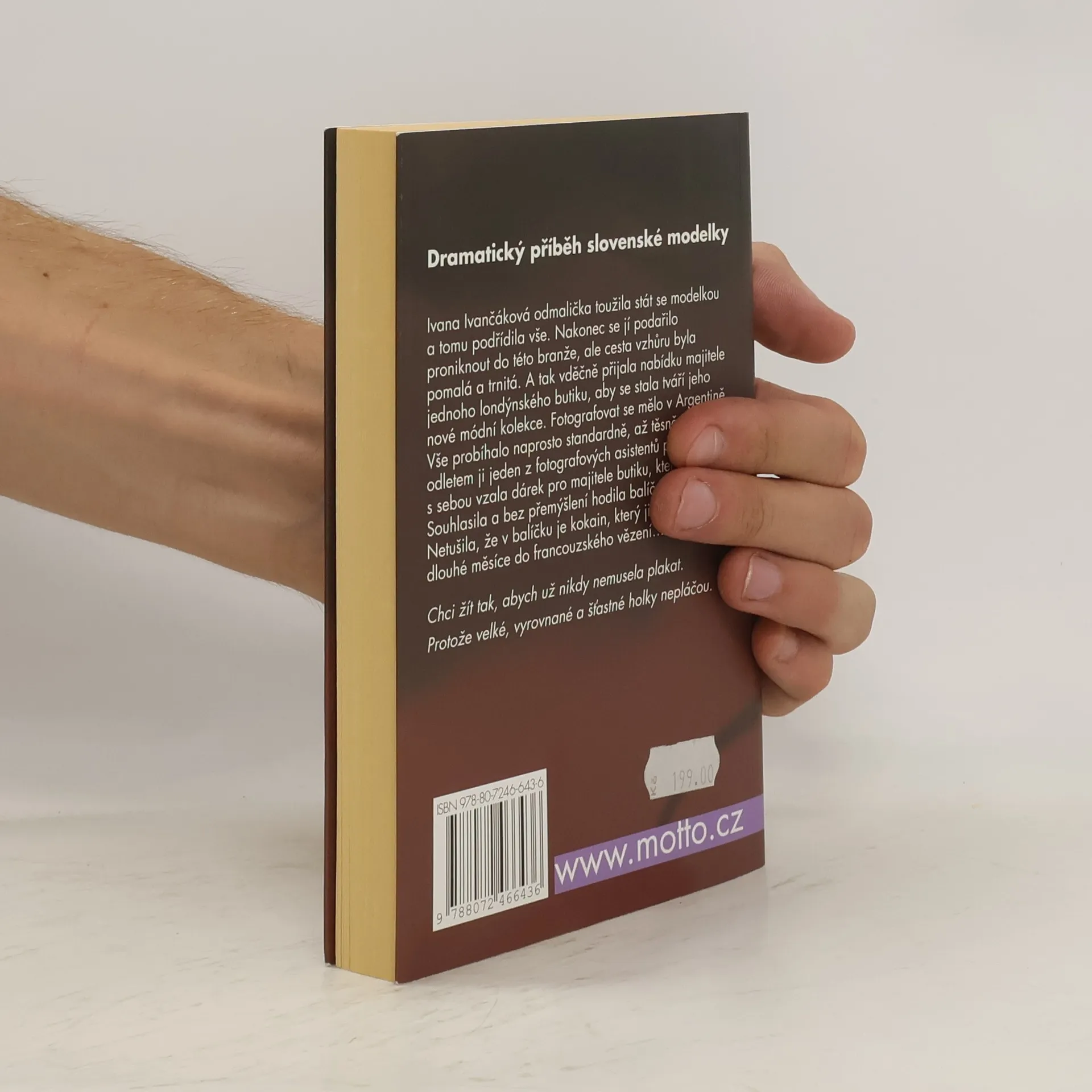 Dramatický příběh slovenské modelky Ivana Ivančáková odmalička toužila stát se modelkou a tomu podřídila vše. Nakonec se jí podařilo proniknout do této branže, ale cesta vzhůru byla pomalá a trnitá. A tak vděčně přijala nabídku majitele jednoho londýnského butiku, aby se stala tváří jeho nové módní kolekce. Fotografovat se mělo v Argentině. Vše probíhalo naprosto standardně, až těsně před odletem ji jeden z fotografových asistentů požádal, aby s sebou vzala dárek pro majitele butiku, který ji najal. Souhlasila a bez přemýšlení hodila balíček do kufru. Netušila, že v balíčku je kokain, který ji dostane na dlouhé měsíce do francouzského vězení… Chci žít tak, abych už nikdy nemusela plakat. Protože velké vyrovnané a šťastné holky nepláčou.