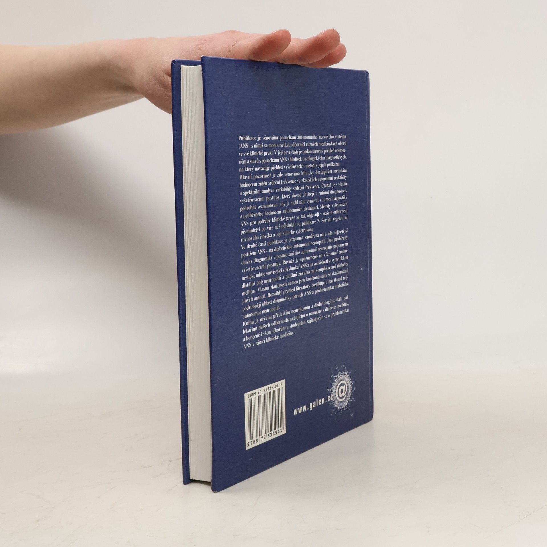 Publikace je věnována poruchám autonomního nervového systému (ANS), s nimiž se mohou setkat odborníci různých medicínských oborů ve své klinické praxi. V jeji prvé části je podán stručný přehled onemocnění a stavů s poruchami ANS z hledisek nosologických a diagnostických, na který navazuje přehled vyšetřovacích metod k jejich průkazu. Ve druhé části publikace je pozornost zaměřena na u nás nejčastéjší postižení ANS - na diabetickou autonomní neuropatii. Jsou probírány otázky diagnostiky a posuzování tíže autonomní neuropatie popsanými vyšetřovacími postupy. Rovněž je upozorněno na významné anamnestické údaje související s dysfunkci ANS a na souvislosti se symetrickou distální polyneuropatií a dalšími závažnými komplikacemi diabetes mellitus. Vlastní zkušenosti autora jsou konfrontovány se zkušenostmi jiných autorů. Rozsáhlý přehled literatury postihuje u nás dosud nejpodrobněji oblast diagnostiky poruch ANS a problematiku diabetické autonomní neuropatie.