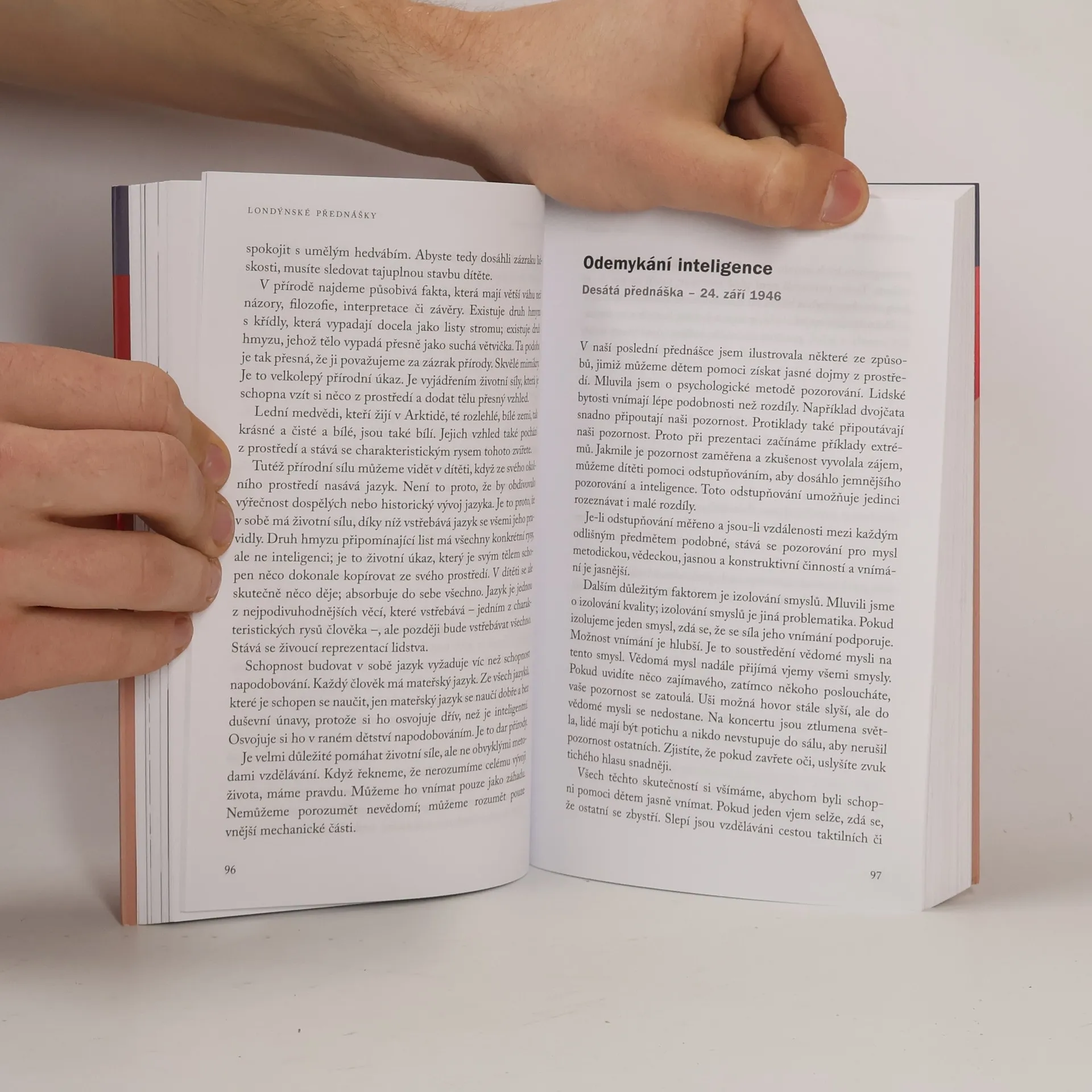 Londýnské přednášky přednesla Maria Montessori v roce 1946 na výcvikovém kurzu pro učitele. V každé z nich čtenář cítí, že Maria Montessori procestovala svět a měla dostatek příležitostí pozorovat děti a jejich vývoj. Přednášky jsou prodchnuty její moudrostí a netýkají se pouze dětství, ale celého vývoje člověka. Londýnské přednášky Marie Montessori se staly základem pro výcvikové kurzy Mezinárodní asociace Montessori. Doslov Hana Slabá.