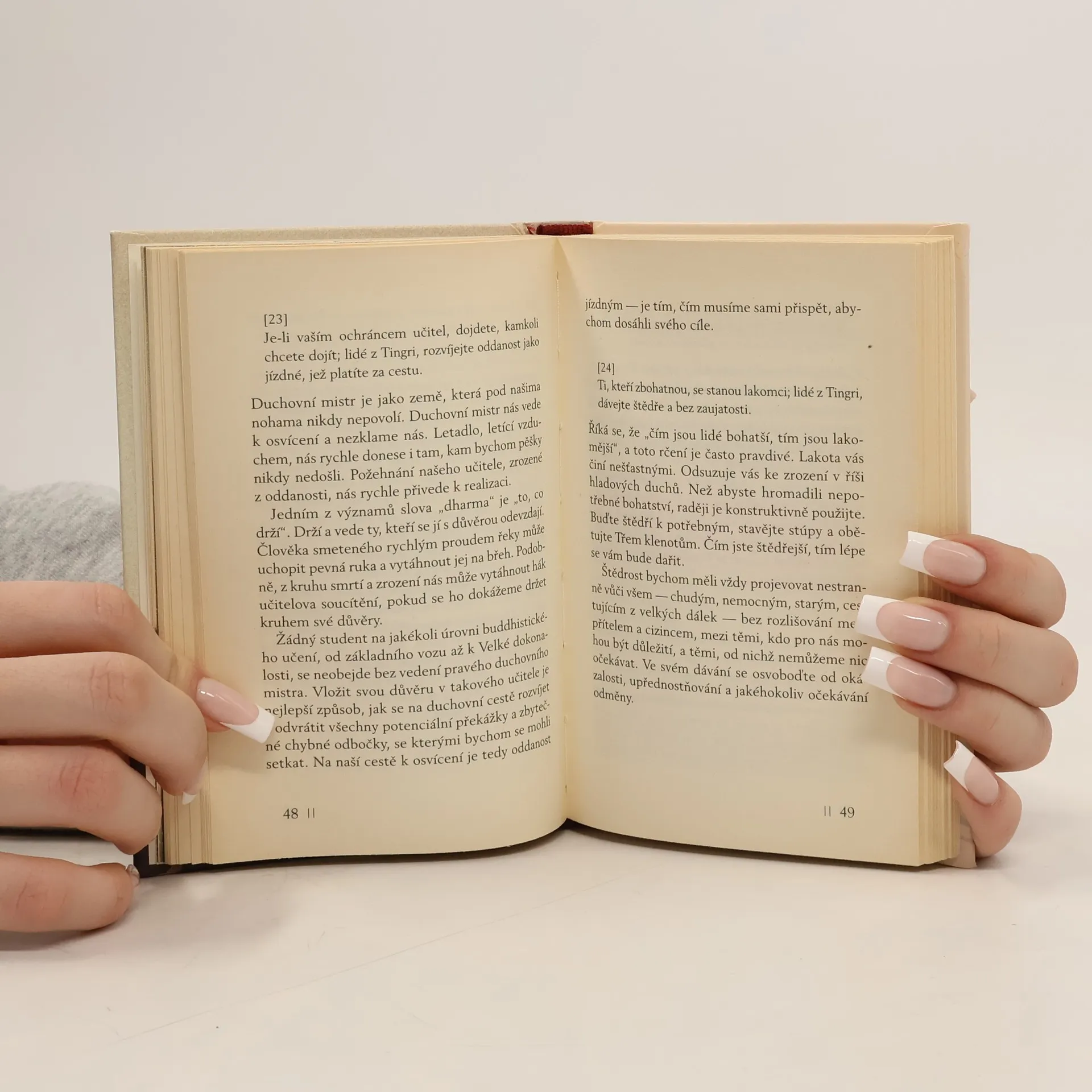 Indický jógin a duchovní mistr Padampa Sanggjä přišel do Tibetu poprvé v roce 1091. Pobýval zde deset let, pak dvanáct let cestoval po Číně a poté se navrátil zpět do Země sněhu, kde zůstal až do své smrti. Než v Tingri v roce 1117 zemřel, věnoval tamějšímu lidu jako své poslední učení těchto Sto veršů rad. Krátce nato řekl: "Má mysl splynula se světem jevů." Tím vyjádřil, že z jeho mysli vymizelo veškeré dualistické vnímání. Poté spočinul svým pohledem na nebi a zemřel. Každý z těchto veršů bohatě, velmi jasně a zpříma okomentoval Dilgo Khjence Rinpočhe (1910-1991) a zároveň tak ukázal, že "lidé z Tingri" se nijak neliší od jiných hledačů pravdy. S velkou láskou, ale nekompromisně nám Dilgo Khjence Rinpočhe dává velkolepé učení o tom, jak zacílit své myšlenky k tomu, na čem v životě opravdu záleží, jak se věnovat duchovní praxi celým svým bytím a jak odhalit konečnou přirozenost mysli. Přeložili Lukáš Chmelík a Lucie Hanigerová. Edice Mangalam - malá řada.