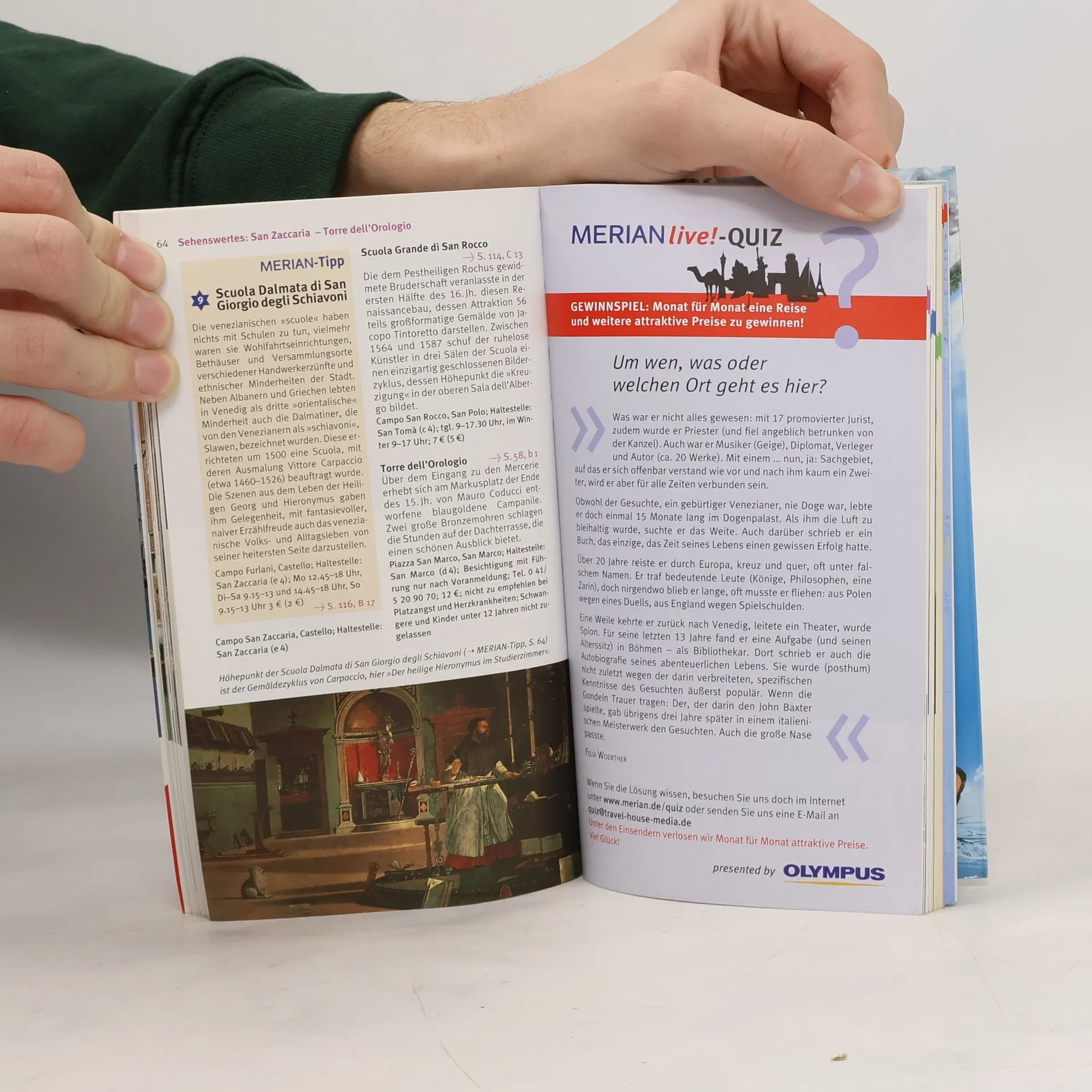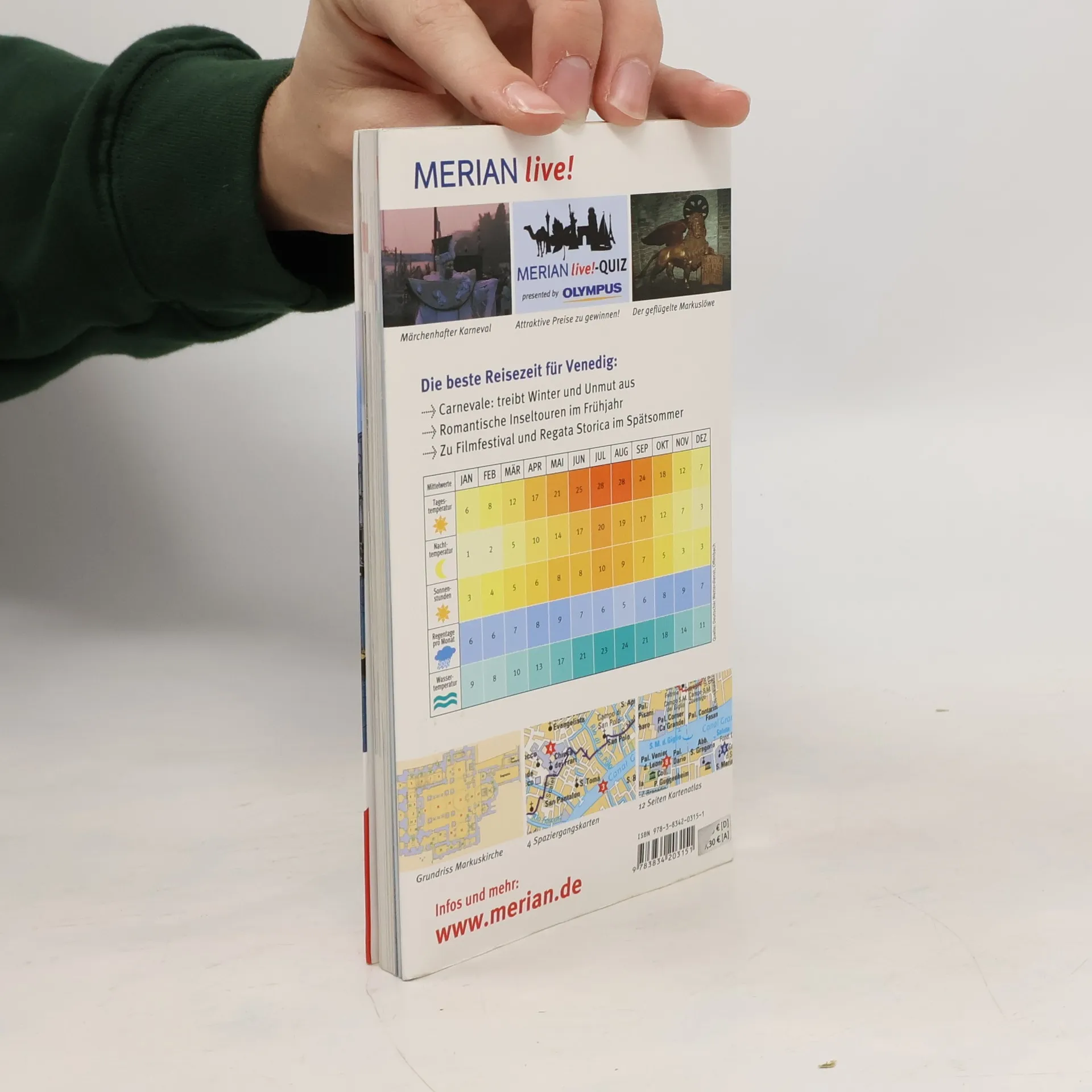 Mehrfach ausgezeichnet als bester Kompakt-Reiseführer: 1. Platz ITB BuchAward! Jetzt neu mit herausnehmbarem Stadtplan zusätzlich zum Kartenatlas. Extra: MERIAN-Quiz mit Gewinnspiel! +++ Eine Auswahl aus dem Inhalt - Sehenswertes: Basilica di San Marco + Canal Grande + Lido + Ponte di Rialto +++ Museen und Galerien: Guggenheim Collection + Museo del Vetro +++ Die 4 schönsten Stadtrundgänge: Jenseits den Canal Grande - Kultur pur + Giudecca - Ein unbekanntes Venedig + Castello - Kirchen über Kirchen + San Marco - Flanieren und Shoppen +++ Die 3 lohnendsten Ausflüge in die Umgebung: Murano - Die Glasbläser-Insel + Torcello und Burano - Für Augen und Sinne + Die Brenta-Villen - Sommersitze von Adel +++ Ca. 60 Farbfotos, herausnehmbarer Stadtplan plus 12 Seiten Kartenatlas, 1 Grundriss, 4 Spaziergangskarten, Sprachführer und Essdolmetscher, MERIAN-TopTen und MERIAN-Tipps