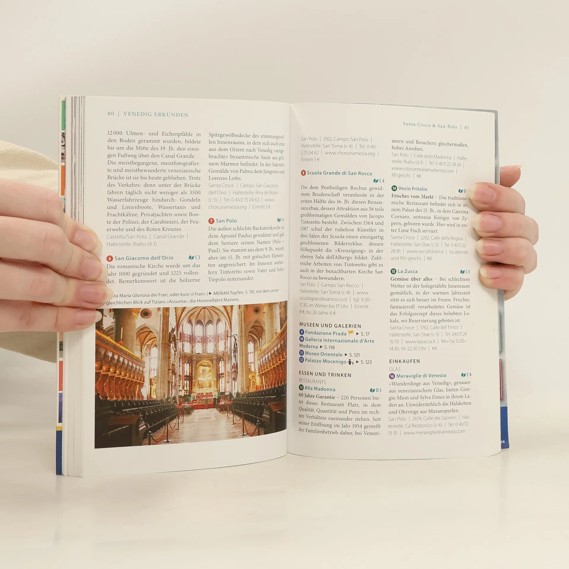 Lange war Venedig auf seine märchenhafte Kulisse beschränkt. Heute präsentiert sich die Lagunenstadt als Kunstmetropole des 21. Jahrhunderts. Romanische Goldmosaiken, gotische Altargemälde und barocke Fresken, Industriearchitektur des 19. Jahrhunderts und Moderne: ein komplettes Kunstbrevier. Mit MERIAN momente das Besondere erleben: MERIAN TopTen: Die Höhepunkte der Stadt auf einen Blick - NEU ENTDECKT: Schneller Überblick über die angesagtesten Locations - MERIAN MOMENTE - Das kleine Glück auf Reisen, Tipps für die kleinen, ganz persönlichen Auszeiten im Urlaub - MIT ALLEN SINNEN - Venedig spüren & erleben: Für unvergessliche Erlebnisse - GRÜNER REISEN: Empfehlungen für den umweltbewussten Urlaub. MERIAN momente bietet: praktische und übersichtliche Sortierung nach den wichtigsten Stadtteilen - fundierte Beschreibungen aller wichtigen Sehenswürdigkeiten, Museen und Ausflugsziele sowie sorgfältig ausgewählte Hotel- und Restaurantempfehlungen, Kultur-, Ausgeh- und Shoppingadressen - alle in Stadtteilkarten verortet, einen Extra-Stadtplan zum Herausnehmen.