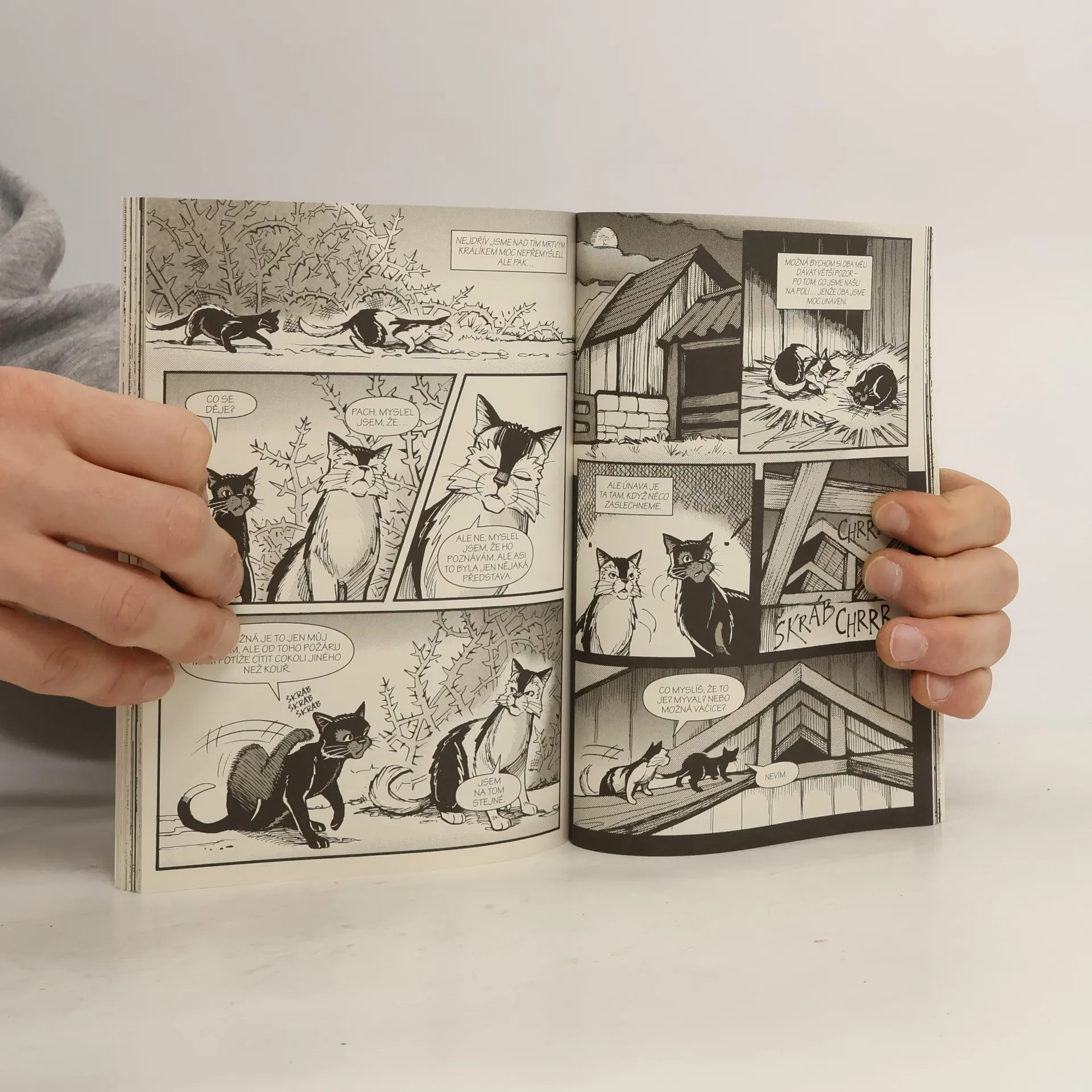 Kocouři Havran a Ječmen si užívají poklidný život na farmě. I když se Havranovi občas zasteskne po lese, hluboko uvnitř ví, že se rozhodl správně, když se vzdal života válečníka Hromového klanu. Ve stodole u dvounožců je mu přece tak dobře! Ovšem jen do chvíle, než se objeví nečekaná návštěva... První část třídílné komiksové série.
