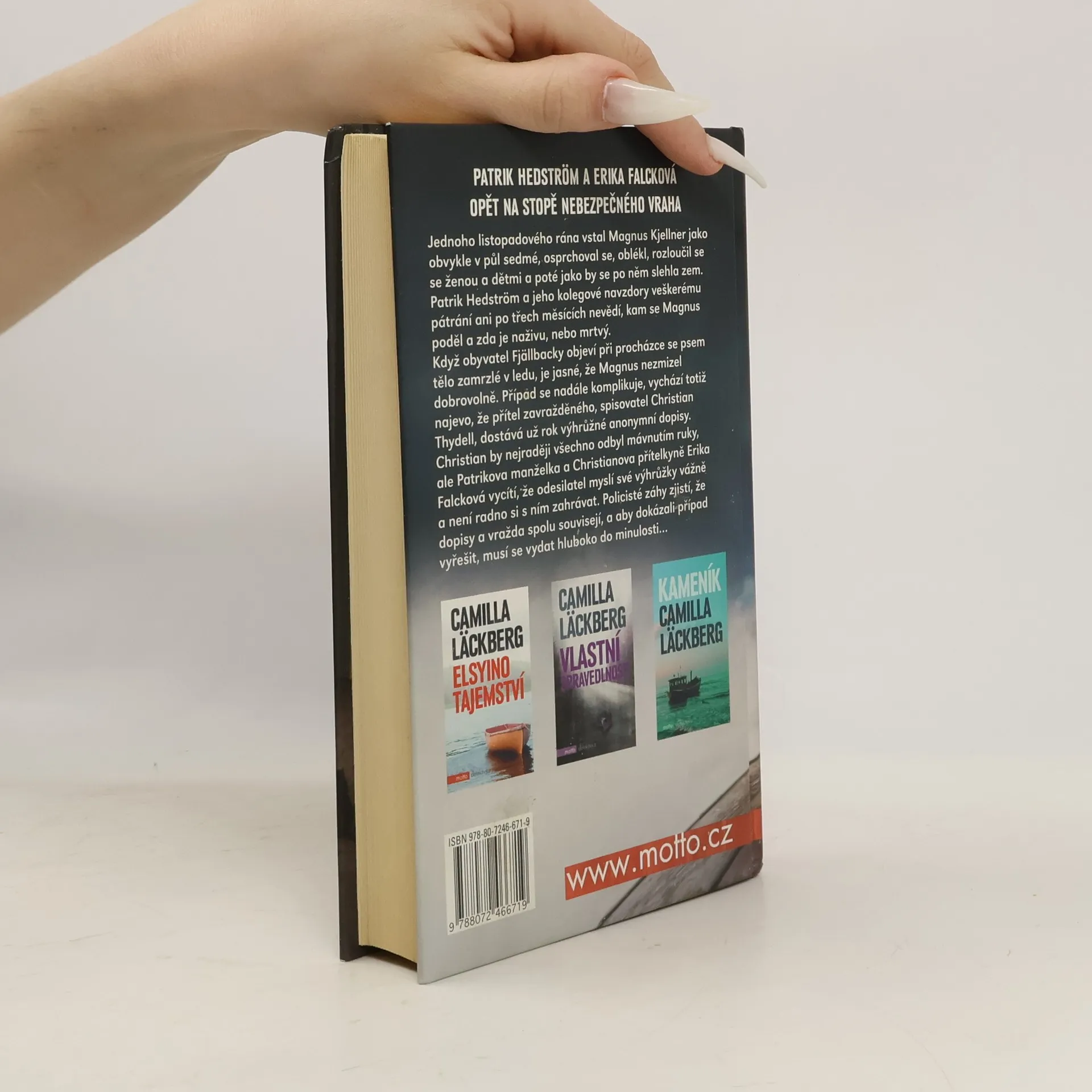 Jednoho listopadového rána vstal Magnus Kjellner jako obvykle v půl sedmé, osprchoval se, oblékl, rozloučil se se ženou a dětmi a poté jako by se po něm slehla zem. Patrik Hedström a jeho kolegové navzdory veškerému pátrání ani po třech měsících nevědí, kam se Magnus poděl a zda je naživu, nebo mrtvý. Když obyvatel Fjällbacky objeví při procházce se psem tělo zamrzlé v ledu, je jasné, že Magnus nezmizel dobrovolně. Případ se nadále komplikuje, vychází totiž najevo, že přítel zavražděného, spisovatel Christian Thydell, dostává už rok výhrůžné anonymní dopisy. Christian by nejraději všechno odbyl mávnutím ruky, ale Patrikova manželka a Christianova přítelkyně Erika Falcková vycítí, že odesílatel myslí své výhrůžky vážně a není radno si s ním zahrávat. Policisté záhy zjistí, že dopisy a vražda spolu souvisejí, a aby dokázali případ vyřešit, musí se vydat hluboko do minulosti...