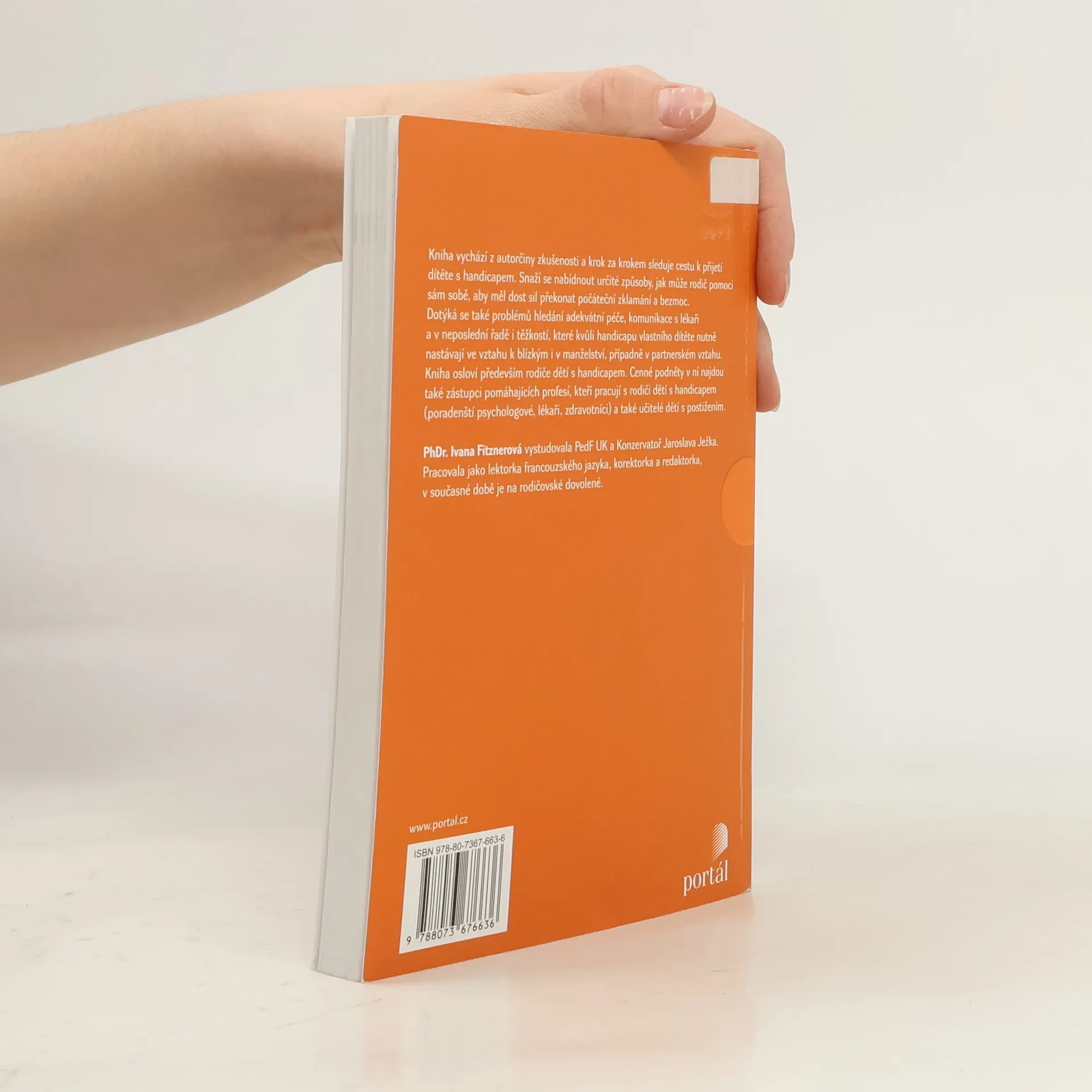 Kniha vychází z vlastní autorčiny zkušenosti. Sleduje krok za krokem cestu k přijetí dítěte s handicapem, snaží se nabídnout i určité způsoby, jak může rodič pomoci sám sobě, aby měl dost sil překonat počáteční zklamání a bezmoc. Dotýká se i problémů hledání adekvátní péče, komunikace s lékaři a v neposlední řadě i těžkostí, které kvůli handicapu vlastního dítěte nutně nastávají ve vztahu k blízkým i v manželství, případně v partnerském vztahu. Kniha osloví rodiče dětí s handicapem. Cenné podněty v ní najdou také zástupci pomáhajících profesí, kteří pracují s rodiči handicapovaných dětí (poradenští psychologové, lékaři, zdravotníci…) a též učitelé dětí s postižením. PhDr. Ivana Fitznerová vystudovala Pedagogickou fakultu UK a Konzervatoř Jaroslava Ježka. Pracovala jako lektorka francouzského jazyka, korektorka a redaktorka, v současné době je na rodičovské dovolené.
