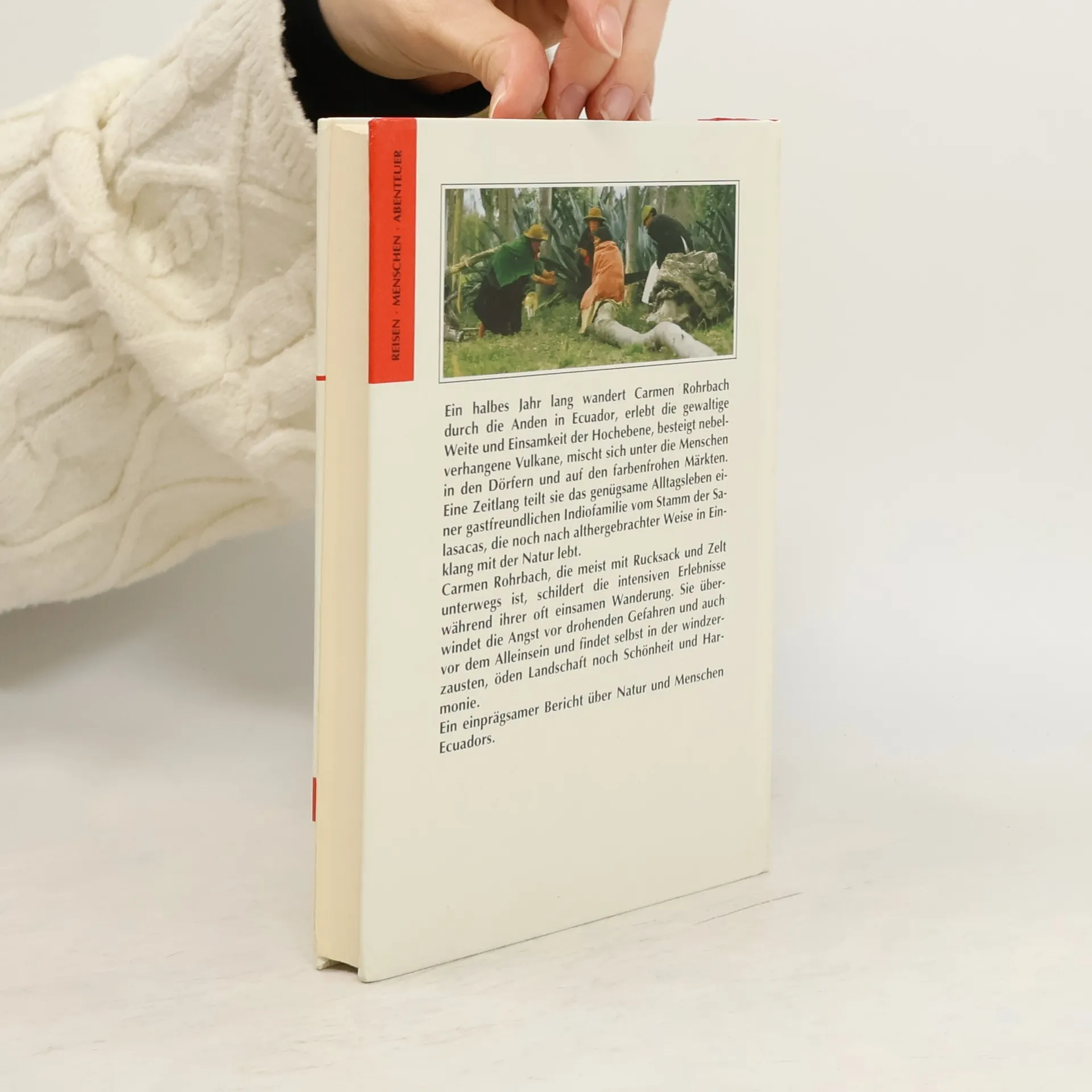 Auf ihrer Reise durch die Anden in Ecuador erlebt Carmen Rohrbach die gewaltige Weite und Einsamkeit des Hochlandes, besteigt nebelverhangene Vulkane und teilt für einige Zeit das genügsame Alltagsleben einer Indiofamilie, die noch nach traditioneller Weise im Einklang mit der Natur lebt. Ein halbes Jahr ist Carmen Rohrbach unterwegs und während ihrer oft einsamen Wanderung überwindet sie die Angst vor drohenden Gefahren und auch vor dem Alleinsein. Ein eindrucksvoller Bericht über Natur und Menschen Ecuadors.