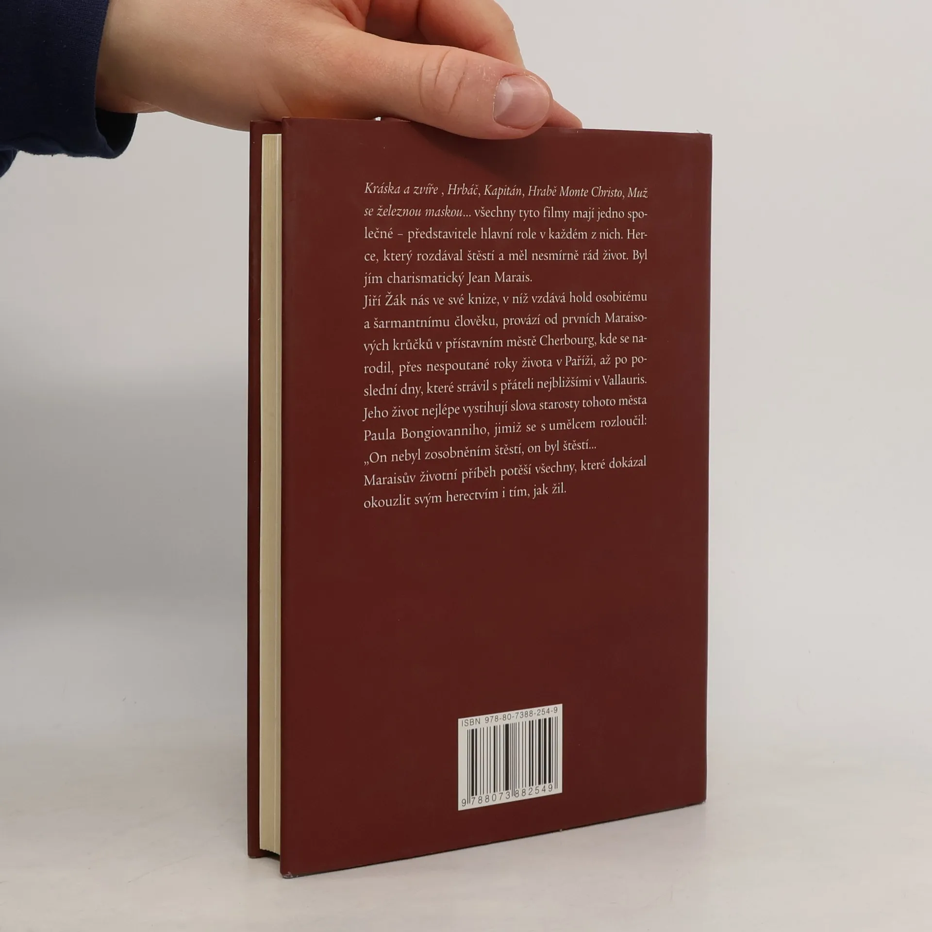 Monografie o jednom z idolů francouzského filmu – herci Jeanu Maraisovi. Po překladu hercovy autobiografie vydané pod názvem Příběhy mého života a scénáři televizního filmu, který vznikl v rámci cyklu Francouzská interview, se Jiří Žák rozhodl k samostatnému zpracování životopisu Jeana Maraise formou monografie. Autor vychází z osobních setkání s touto legendou francouzského filmu, ale i z korespondence s Jeanem Cocteauem a z literatury, zejména ze zmiňované autobiografie. Součástí knihy je soupis divadelních a filmových rolí Jeana Maraise.