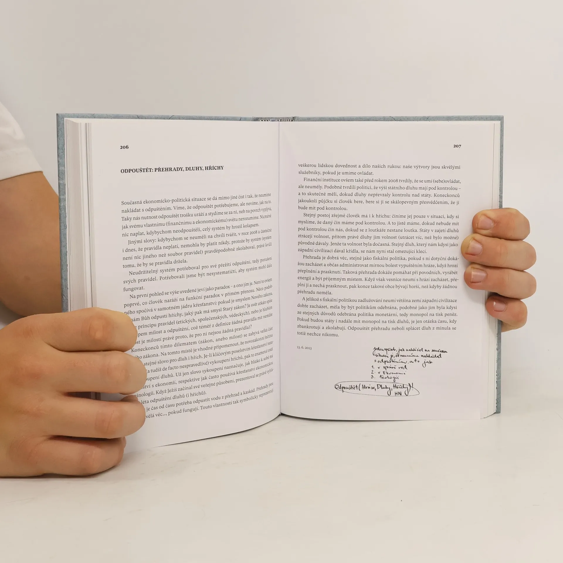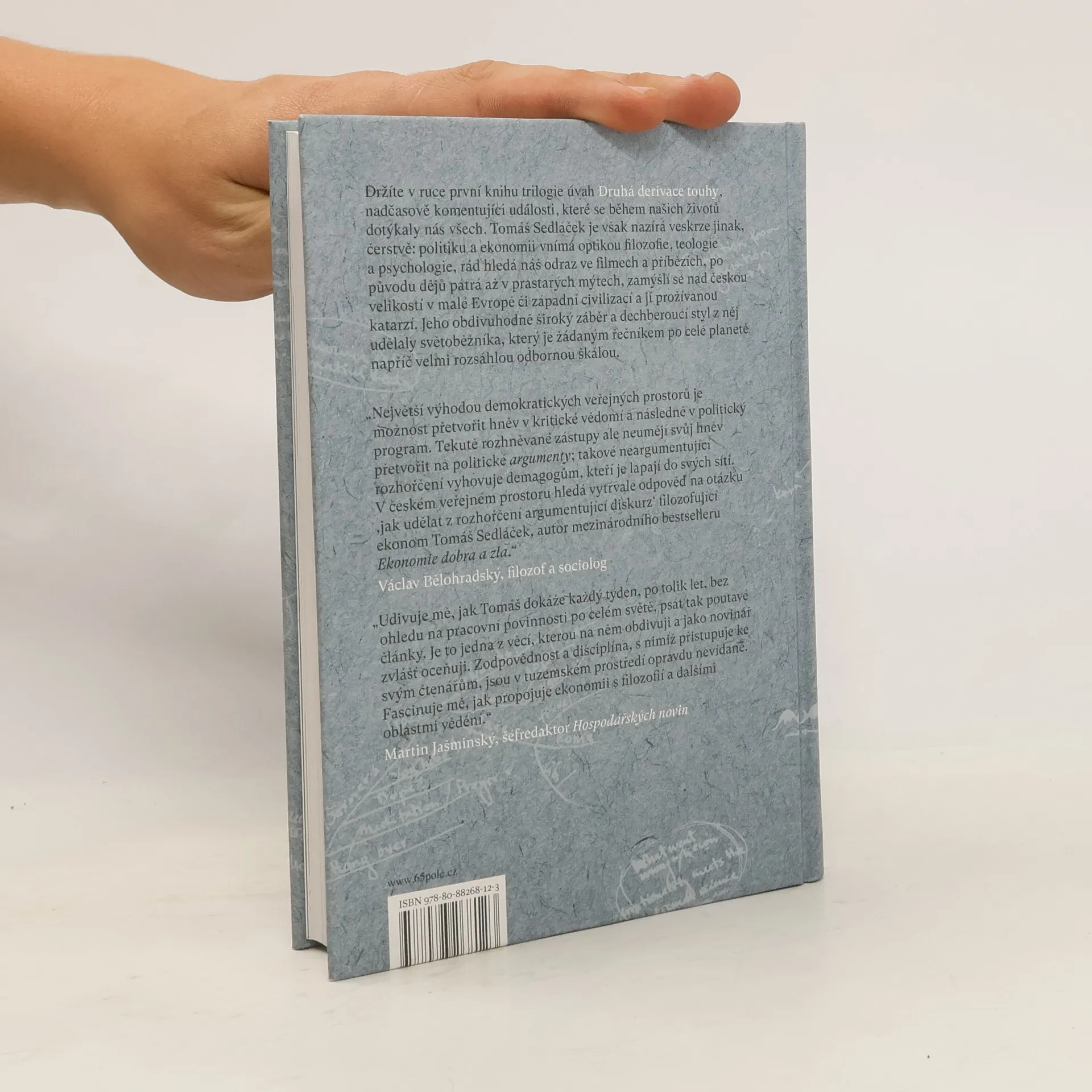 Člověk duše - vnější. Úvahy nad (ne)končícími otázkami. Úvahy ekonoma Tomáše Sedláčka se ohlíží za událostmi nabitým desetiletím. Jedná se o jednu z nejdelších a nejsouvislejších sérií úvah v českém teritoriu, která ukazuje autorovu názorovou integritu a pestrost myšlenek, široký rozhled a sečtělost, hravost a smysl pro humor.