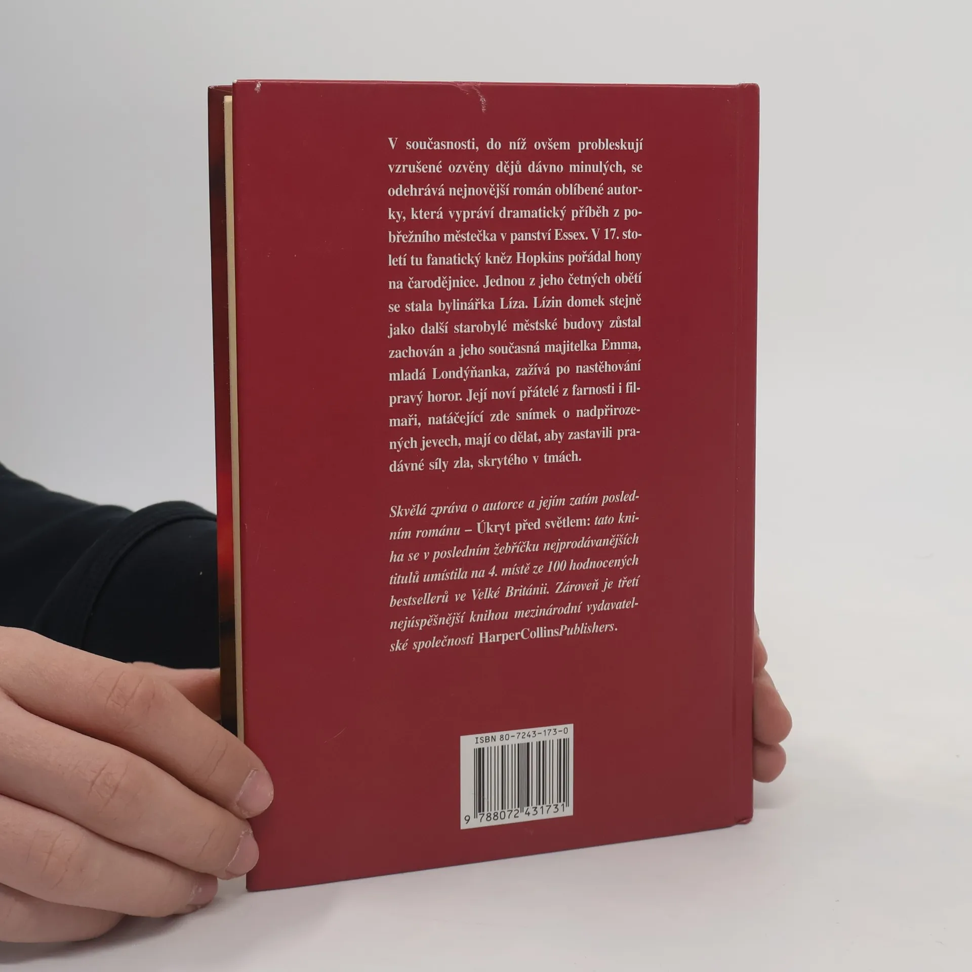 V současnosti, do níž ovšem probleskují vzrušené ozvěny dějů dávno minulých, se odehrává nejnovější román oblíbené autorky, která vypráví dramatický příběh z pobřežního městečka v panství Essex. V 17. století tu fanatický kněz Hopkins pořádal hony na čarodějnice. Jednou z jeho četných obětí se stala bylinářka Lisa. Lisin domek stejně jako další starobylé městské budovy zůstal zachován a jeho současná majitelka Emma, mladá Londýňanka, zažívá po nastěhování pravý horor. Její noví přátelé z farnosti i filmaři, natáčející zde snímek o nadpřirozených jevech, mají co dělat, aby zastavili pradávné síly zla, skrytého v tmách.