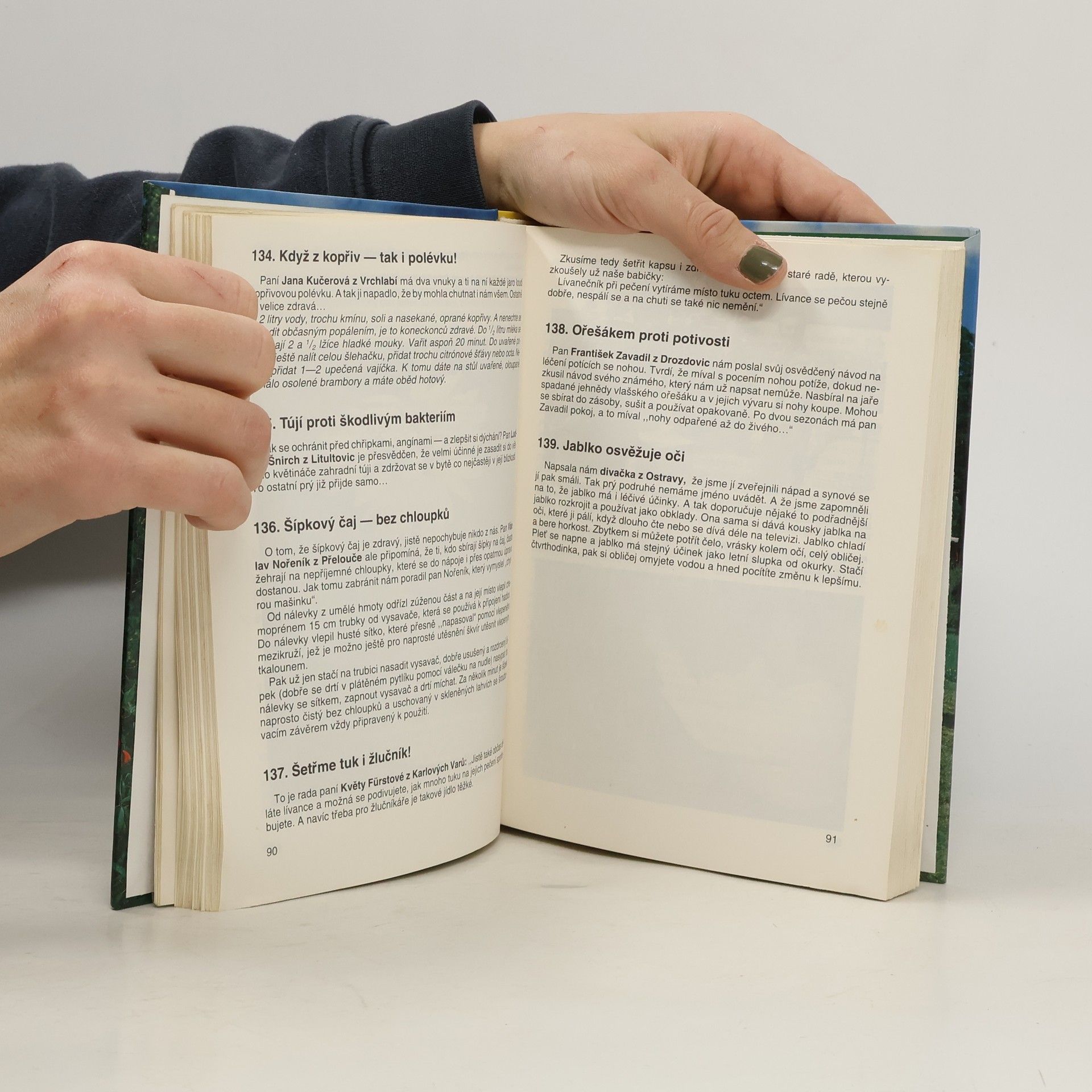 Obsah: Z historie receptářů, Recepty na polévky, saláty, recepty po našich předcích, které by neměly upadnout v zapomenutí, Kuře na jedenáct způsobů, Zeleninová jídla, Různé recepty na slané i sladké jídla, Třiatřicet kutilských nápadů, Recepty pro zdraví a dobrou pohodu, Pěstitelské rady do zahrady i do paneláku, Třiatřicet kutilských nápadů podruhé, Zavařujeme, sušíme, nakládáme, Nápady na ochranu rostlin, Rady pro chovatele domácích zvířat, Třiatřicet kutilských nápadů potřetí, Další různé nápadité recepty. První vydání.... celý text
