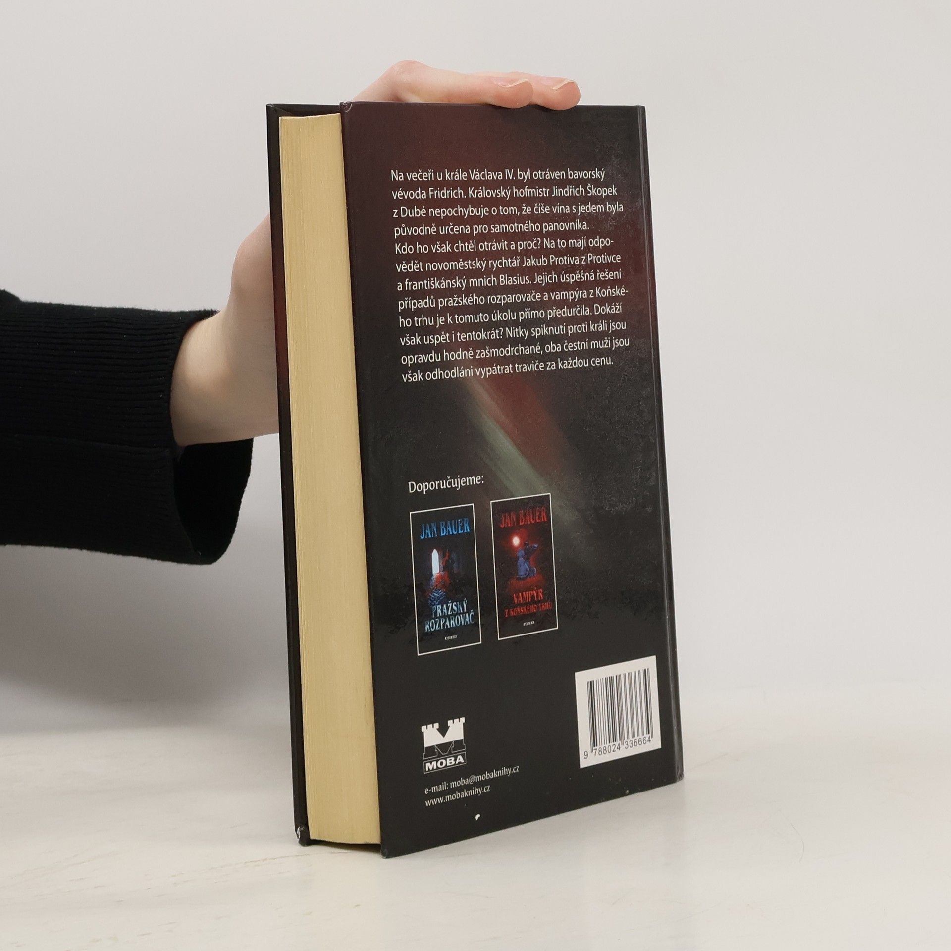 Na večeři u krále Václava IV. byl otráven bavorský vévoda Fridrich. Královský hofmistr Jindřich Škopek z Dubé nepochybuje o tom, že číše vína s jedem byla původně určena pro samotného panovníka. Kdo ho však chtěl otrávit a proč? Na to mají odpovědět novoměstský rychtář Jakub Protiva z Protivce a františkánský mnich Blasius. Jejich úspěšná řešení případů pražského rozparovače a vampýra z Koňského trhu je k tomuto úkolu přímo předurčila. Dokáží však uspět i tentokrát? Nitky spiknutí proti králi jsou opravdu hodně zašmodrchané, oba čestní muži jsou však odhodláni vypátrat traviče za každou cenu.