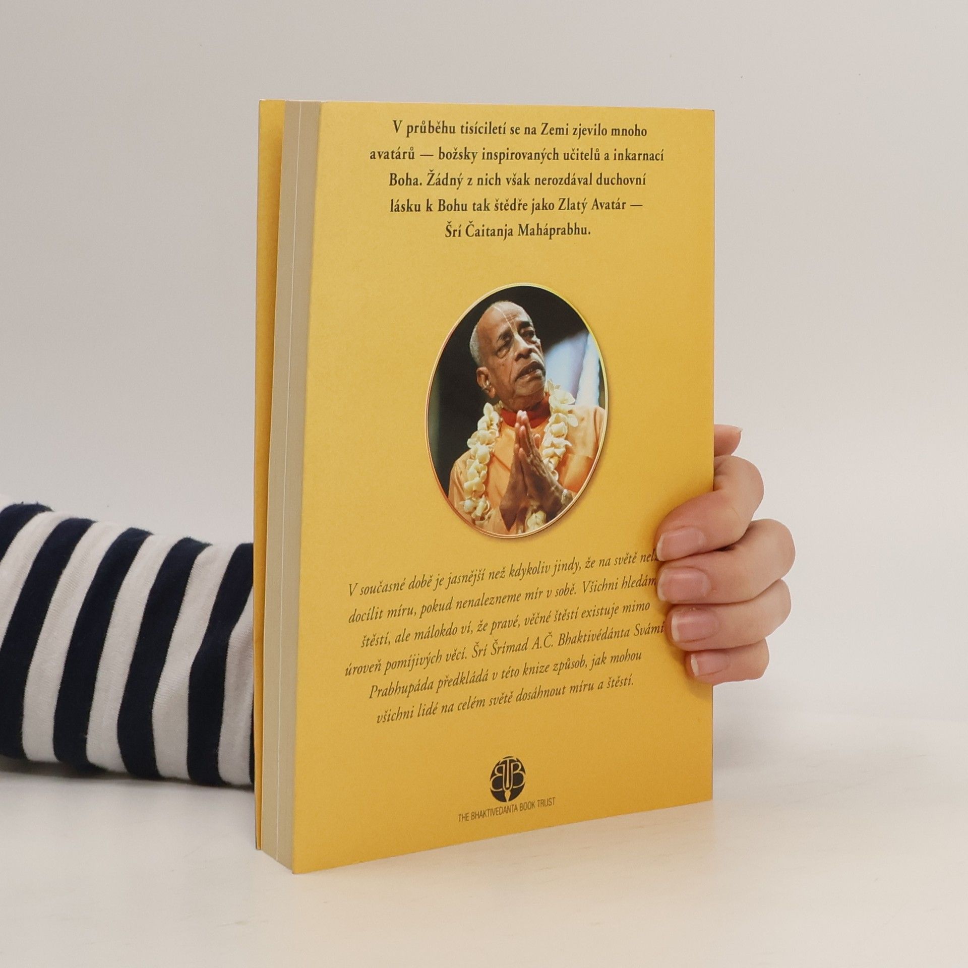 Šrí Šrímad A. Č. Bhaktivédanta Swami Prabhupáda Tato kniha popisuje život a učení Šrí Čaitanji Maháprabhua, který před pěti sty léty v Indii vlastním příkladem ukázal jediný praktický způsob seberealizace pro tento věk - zpívání Haré Kršna mahá-mantry. V současné době je jasnější než kdykoliv jindy, že nelze docílit míru na světě, dokud nenajdeme mír v sobě. Všichni hledáme štěstí, ale nikdo neví, co pravé štěstí je - ve skutečnosti jsou pouze něktěří lidé šťastní, neboť málokdo ví, že věčné štěstí existuje mimo úroveň pomíjivých věcí. A. Č. Bhaktivédanta Swami Prabhupáda předkládá v této knize způsob, jak všichni lidé na celém světě mohou dosáhnout míru a štěstí. Vydal: The Bhaktivedanta Book Trust
