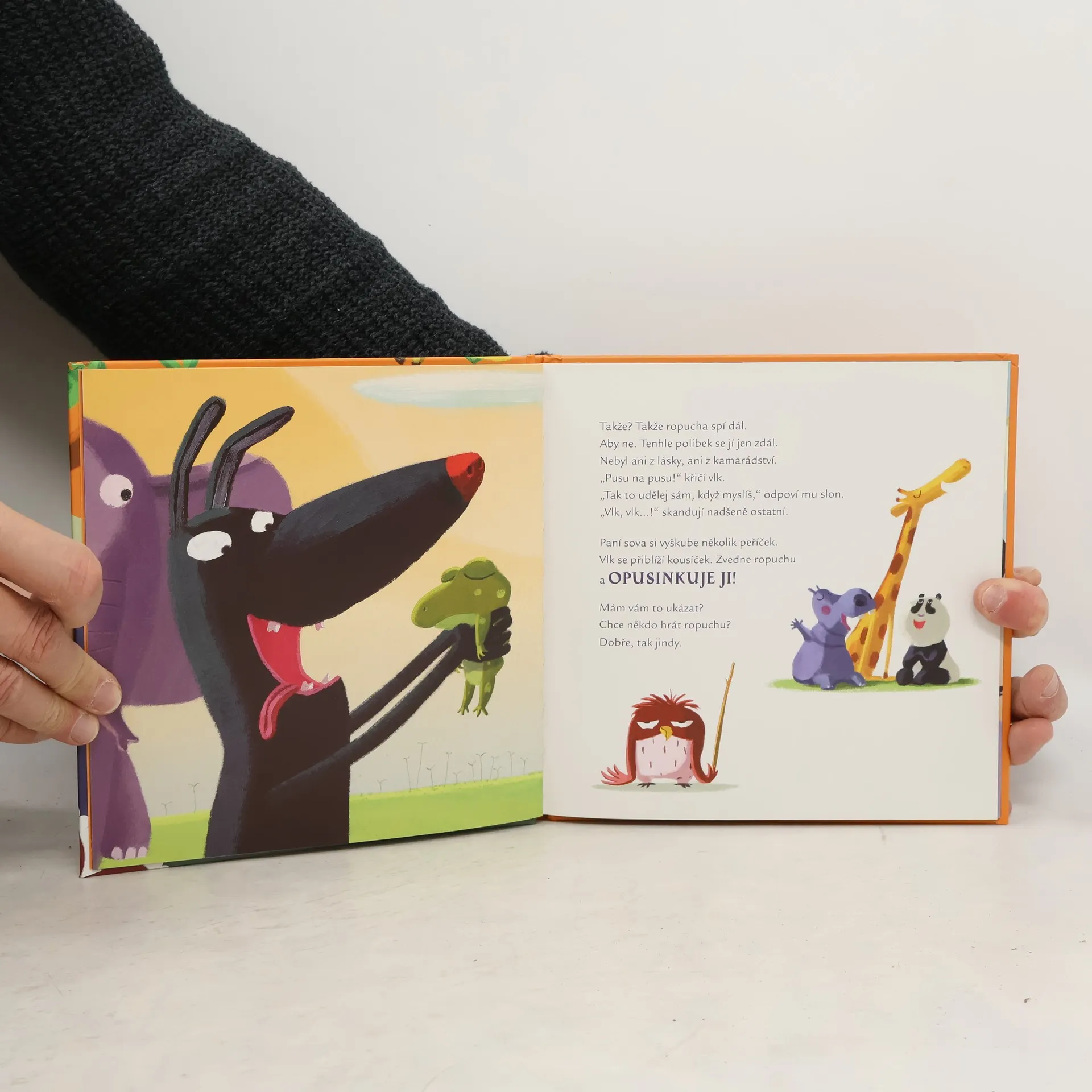 Když se nechce ropuše vstávat, je to pěkný malér. Obzvlášť když ji chcete kouzlem proměnit ve sličného prince. Dokáže ropuchu někdo vzbudit? Pomůžou pusinky ostatních zvířátek? Slepičí babička vám všechno poví.