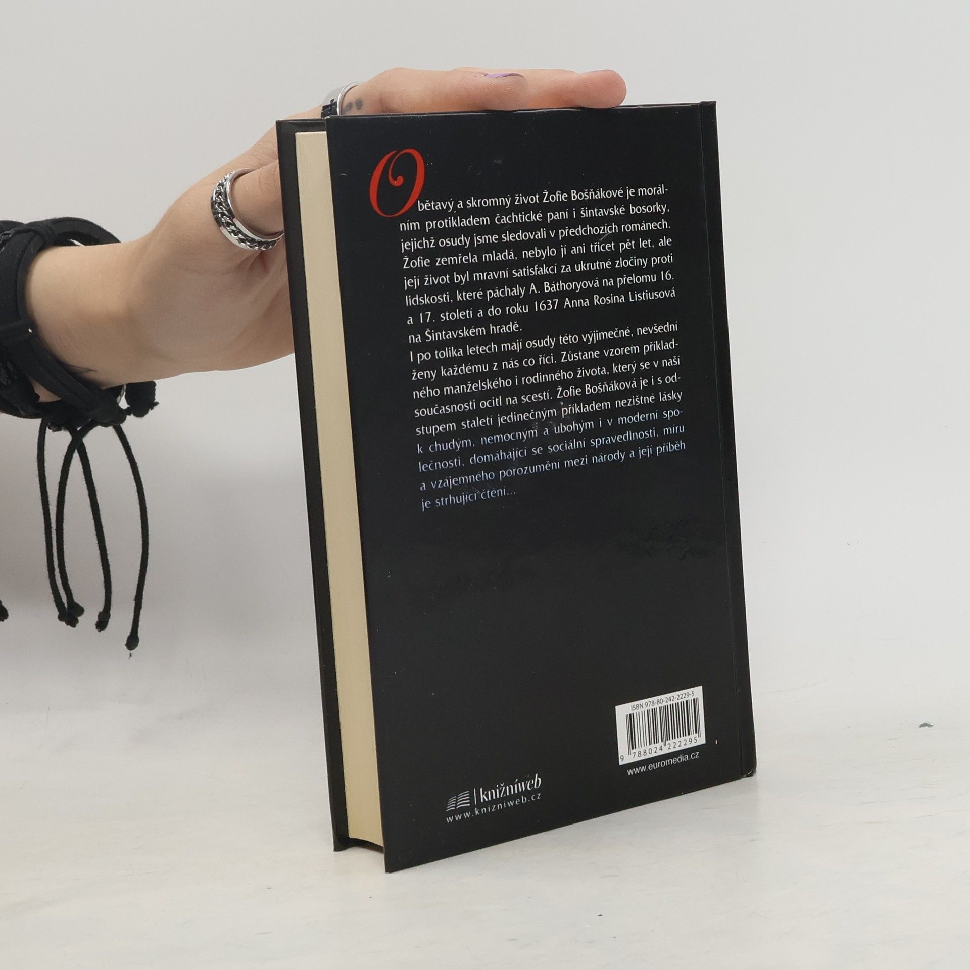 5. díl: Obětavý a skromný život Žofie Bošňákové je morálním protikladem čachtické paní i šintavské bosorky, jejichž osudy jsme sledovali v předchozích románech. Žofie zemřela mladá, nebylo jí ani třicet pět let, ale její život byl mravní satisfakcí za ukrutné zločiny proti lidskosti, které páchaly A. Báthoryová na přelomu 16. a 17. století a do roku 1637 Anna Rosina Listiusová na Šintavském hradě. I po tolika letech mají osudy této výjimečné, nevšední ženy každému z nás co říci. Zůstane vzorem příkladného manželského i rodinného života, který se v naší současnosti ocitl na scestí. Žofie Bošňáková je i s odstupem staletí jedinečným příkladem nezištné lásky k chudým, nemocným a ubohým i v moderní společnosti, domáhající se sociální spravedlnosti, míru a vzájemného porozumění mezi národy a její příběh je strhující čtení...