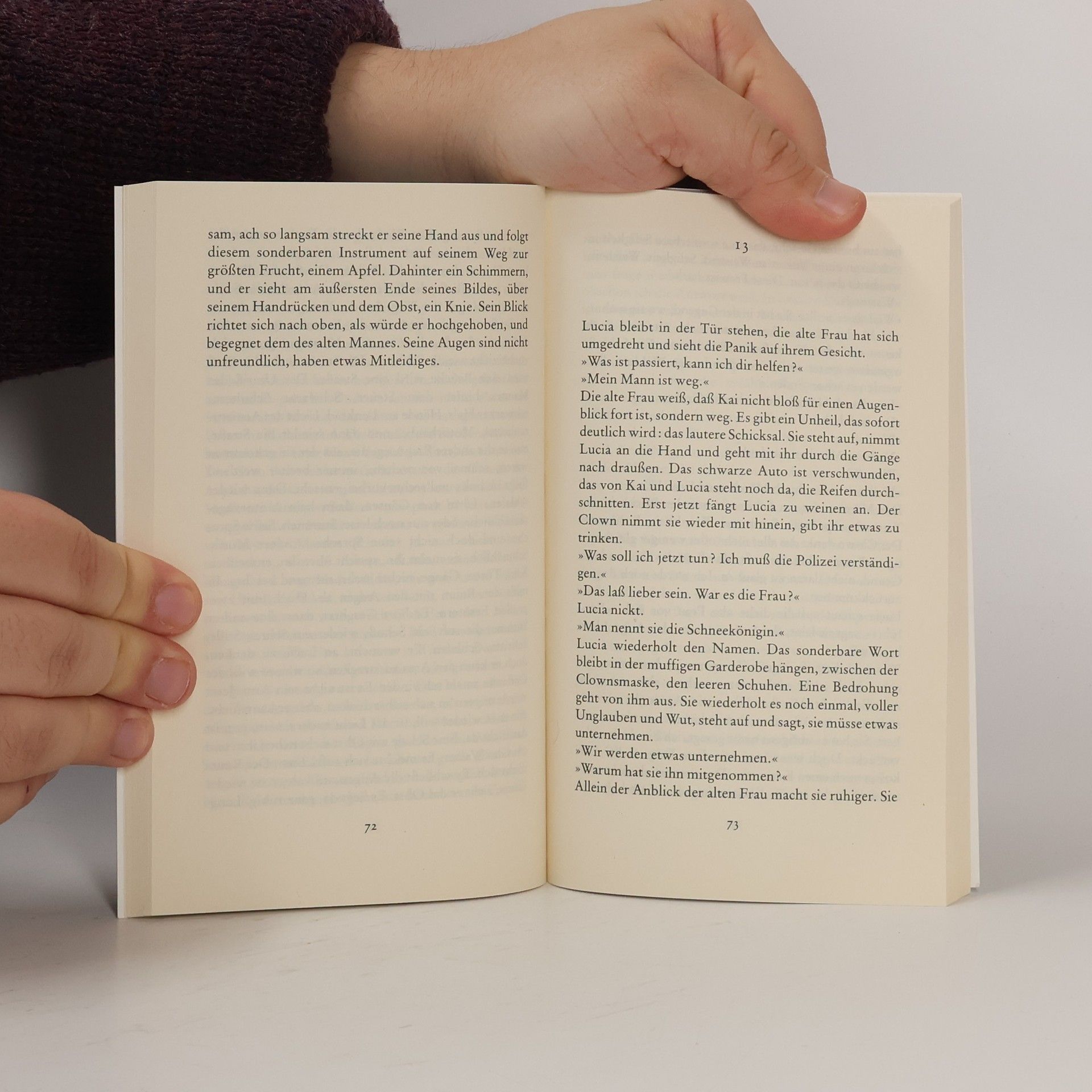 Thema des Romans ist die Geschichte der vollkommenen Schönheit und des vollkommenen Glücks. Um dieses Thema darstellen zu können, bedarf es eines Paares. Sie heißen Lucia und Kai und wohnen in der Nähe von Amsterdam. Ein Artistenpaar mit wunderbarer Begabung: Lucia kann Kais Gedanken lesen. Doch die Zeiten ändern sich: Die vom Fernsehen verwöhnten Zuschauer wollen das schöne Paar im Zirkus immer seltener bewundern. Es gibt nur eine Überlebenschance: den Süden. Und so macht sich das vollendet schöne Paar auf den Weg über die hohen Pässe in die für sie unwirtliche Gegend. Dort begegnen sie der Frau mit dem weißen, eisigen Gesicht, die sich zwischen beide stellt. Das ist der Beginn einer gefahrvollen Zeit, die wie alle Gefahren eines füreinander bestimmten Paares aber ein Ende nehmen wird.