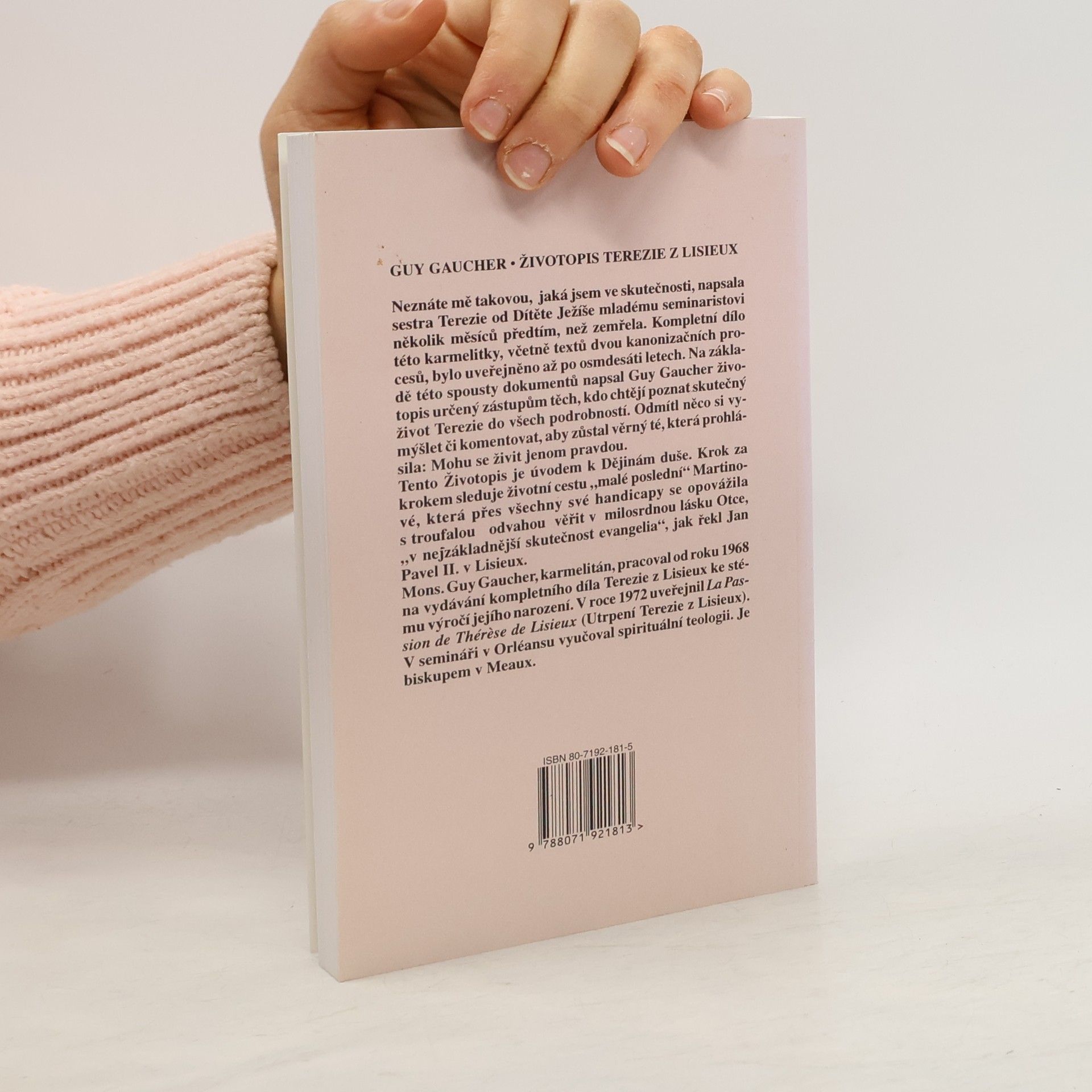 Neznáte mě takovou, jaká jsem ve skutečnosti, napsala sestra Terezie od Dítěte Ježíše mladému seminaristovi několik měsíců předtím, než zemřela. Kompletní dílo této karmelitky, včetně textů dvou kanonizačních procesů, bylo uveřejněno až po osmdesáti letech. Na základě těchto dokumentů napsal Guy Gaucher životopis určený zástupům těch, kdo chtějí poznat skutečný život Terezie do všech podrobností. Odmítl něco si vymýšlet či komentovat, aby zůstal věrný té, který prohlásila: Mohu se živit jenom pravdou.
