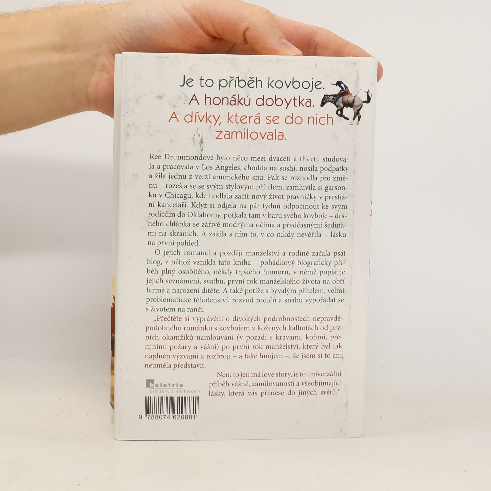Ree Drummondová, ve věku mezi dvaceti a třiceti, žila v Los Angeles a užívala si americký sen. Po rozchodu se svým přítelem se rozhodla pro změnu a odjela do Oklahomy, kde potkala svého kovboje – drsného muže s modrýma očima. Zažila lásku na první pohled, což ji přivedlo k napsání blogu o jejich romanci, manželství a rodině, který se stal základem této knihy. Autorka popisuje jejich seznámení, svatbu, první rok manželství na farmě a narození dítěte, ale také potíže s ex-přítelem, osobní finanční krizi, problematické těhotenství a rozvod rodičů. V jejím vyprávění se prolínají divoké detaily nepravděpodobného románku s kovbojem, od prvních okamžiků namlouvání až po výzvy prvního roku manželství, který byl plný překvapení a obtíží. Tento příběh není jen o lásce, ale o vášni a všeobjímající lásce, která přenáší do jiných světů. Je to příběh o kovbojích, honácích dobytka a dívce, která se do nich zamilovala.