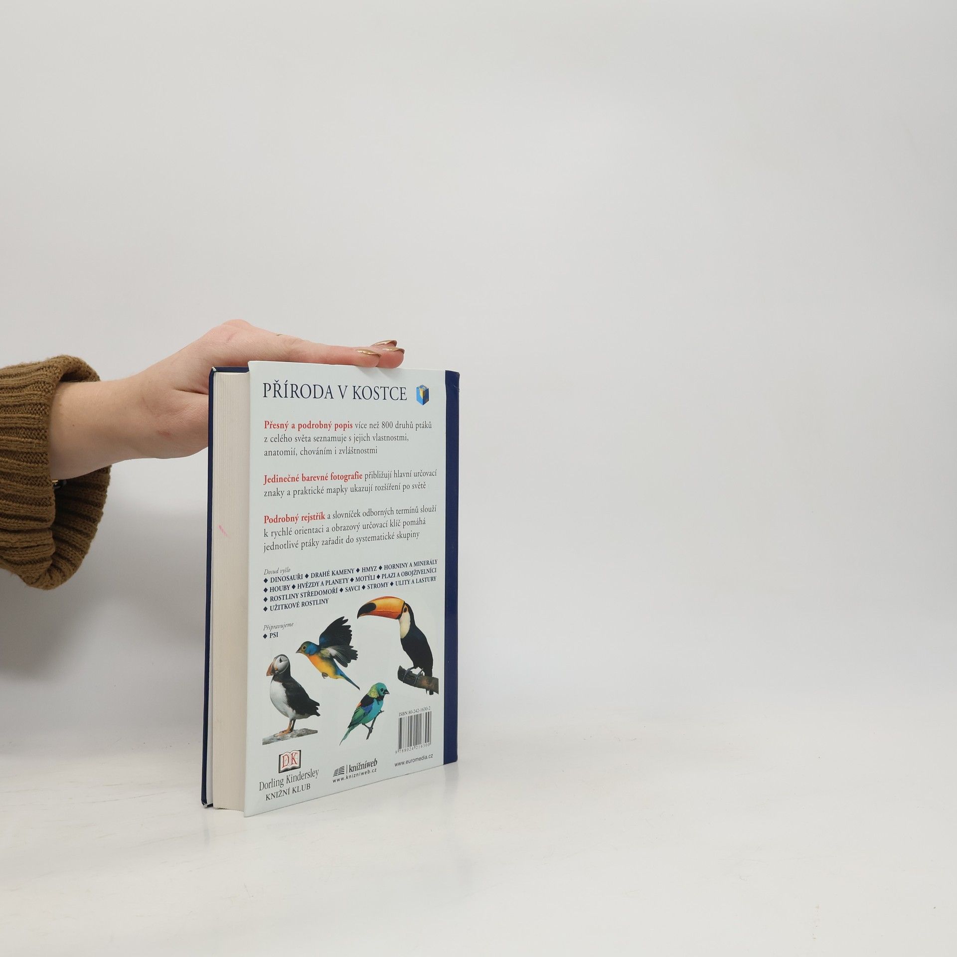 Další encyklopedie z řady Příroda v kostce. Zasvěcený text, nádherné fotografie a systematické uspořádání činí z této příručky dokonalého průvodce světem ptáků. V tomto svazku je zahrnuto 800 druhů a u každého jsou uvedeny podrobné informace i nejrůznější zajímavosti. Příručka usnadní pozorování a určování ptáků na zahradě i ve volné přírodě.