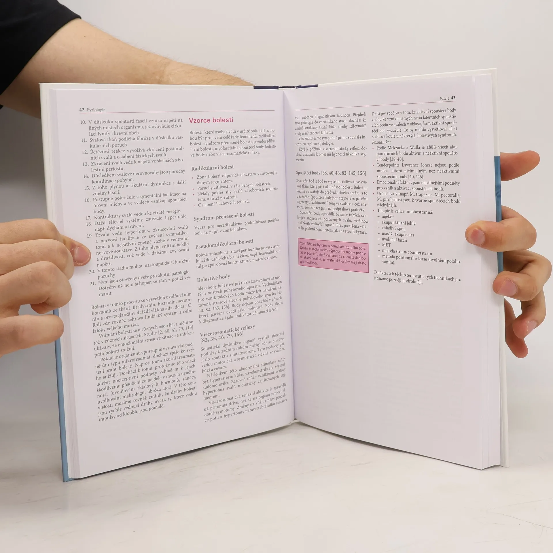 Pro ortopedy, osteopaty, fyzioterapeuty, maséry a chiropraktiky Kniha, napsaná zkušenými odborníky, specialisty na osteopatii a manuální terapii, je rozdělena do dvou hlavních částí. V první části, která obsahuje celkem jedenáct kapitol, se Philipp Richter zabývá funkčními svalovými řetězci, ve druhé části nazvané Spouštěcí body a jejich terapie, se Eric Hebgen v celkem osmi kapitolách velmi podrobně rozepisuje o tematice, spjaté se svalovými bolestmi hlavy a šíje, s bolestmi v horní či dolní polovině trupu, s bolestmi lokte a prstů, s bolestmi v kyčlích, stehnech a kolenou, v bércích, kotnících a dolní částí nohy. Výklad doprovází 263 barevných ilustrací.
